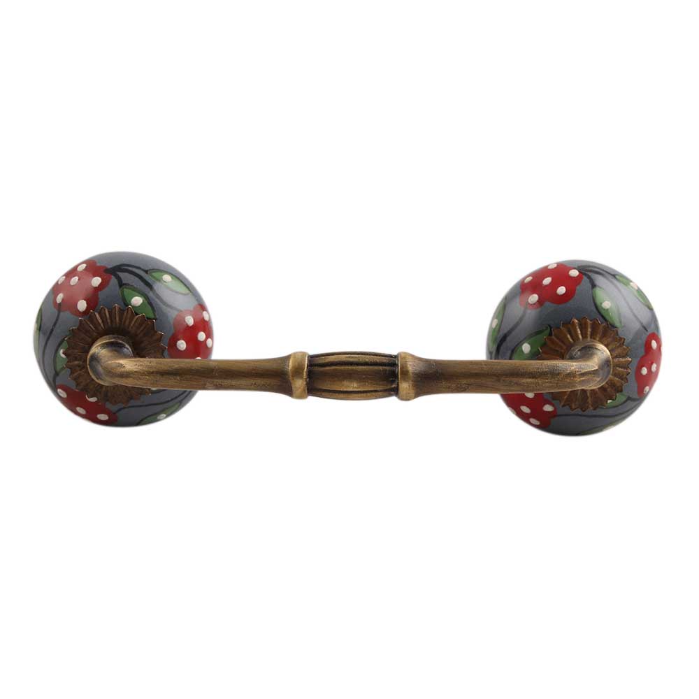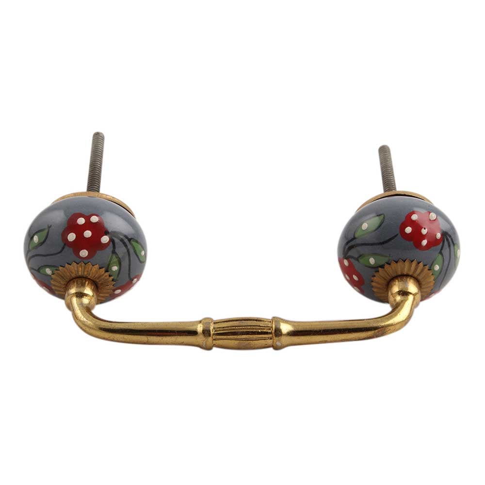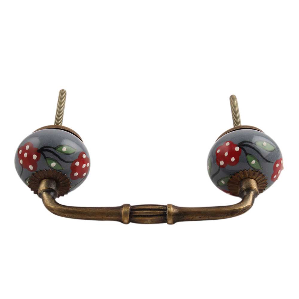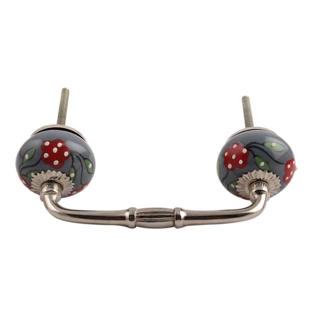 Pea Green Leaf Flower Ceramic Bridge Handle. Ideal for Drawer, Dresser, Cabinet, Wardrobe, Cupboard and Almirah.