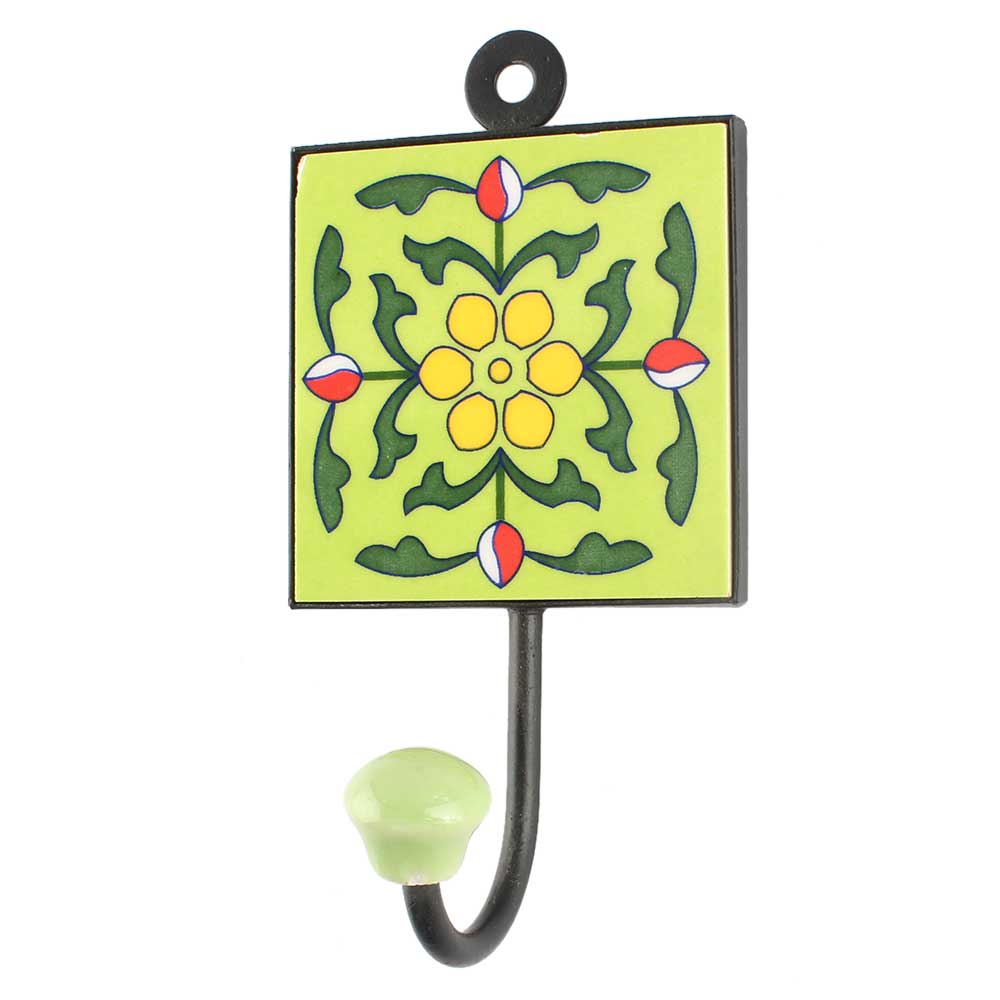 Pea Green Leaf Flower Ceramic Tile Hook