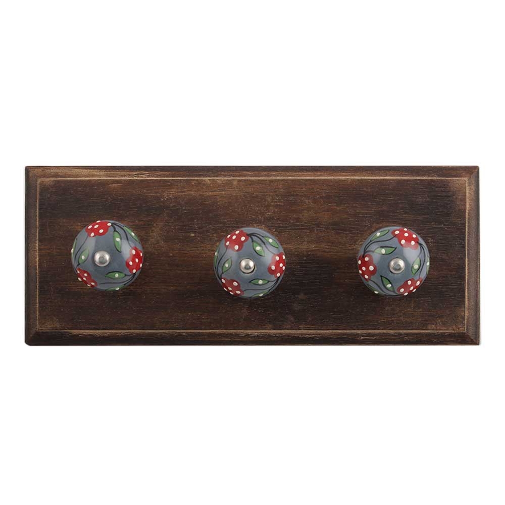 Pea Green Leaf Flower Ceramic Wooden Hook. A Perfect Complement to the Soft Tone of the Wood are these White Traditional Hat & Coat Hook Made of Genuine Porcelain and Brass. It can be use to Hang Jewellery, Leashes, Towels, Scarves, Light Weight Sweaters, Caps Etc.
