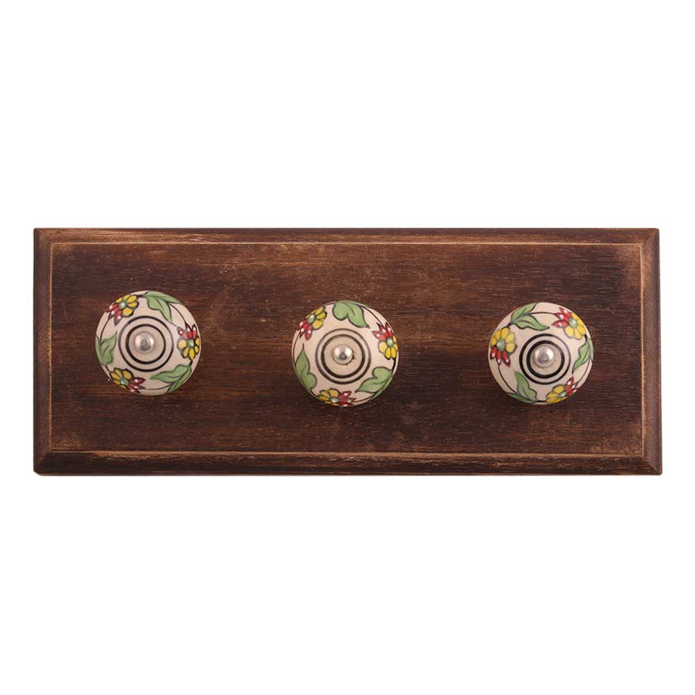 Pea Green Leaf Flower Ceramic Wooden Hook. A Perfect Complement to the Soft Tone of the Wood are these White Traditional Hat & Coat Hook Made of Genuine Porcelain and Brass. It can be use to Hang Jewellery, Leashes, Towels, Scarves, Light Weight Sweaters, Caps Etc.