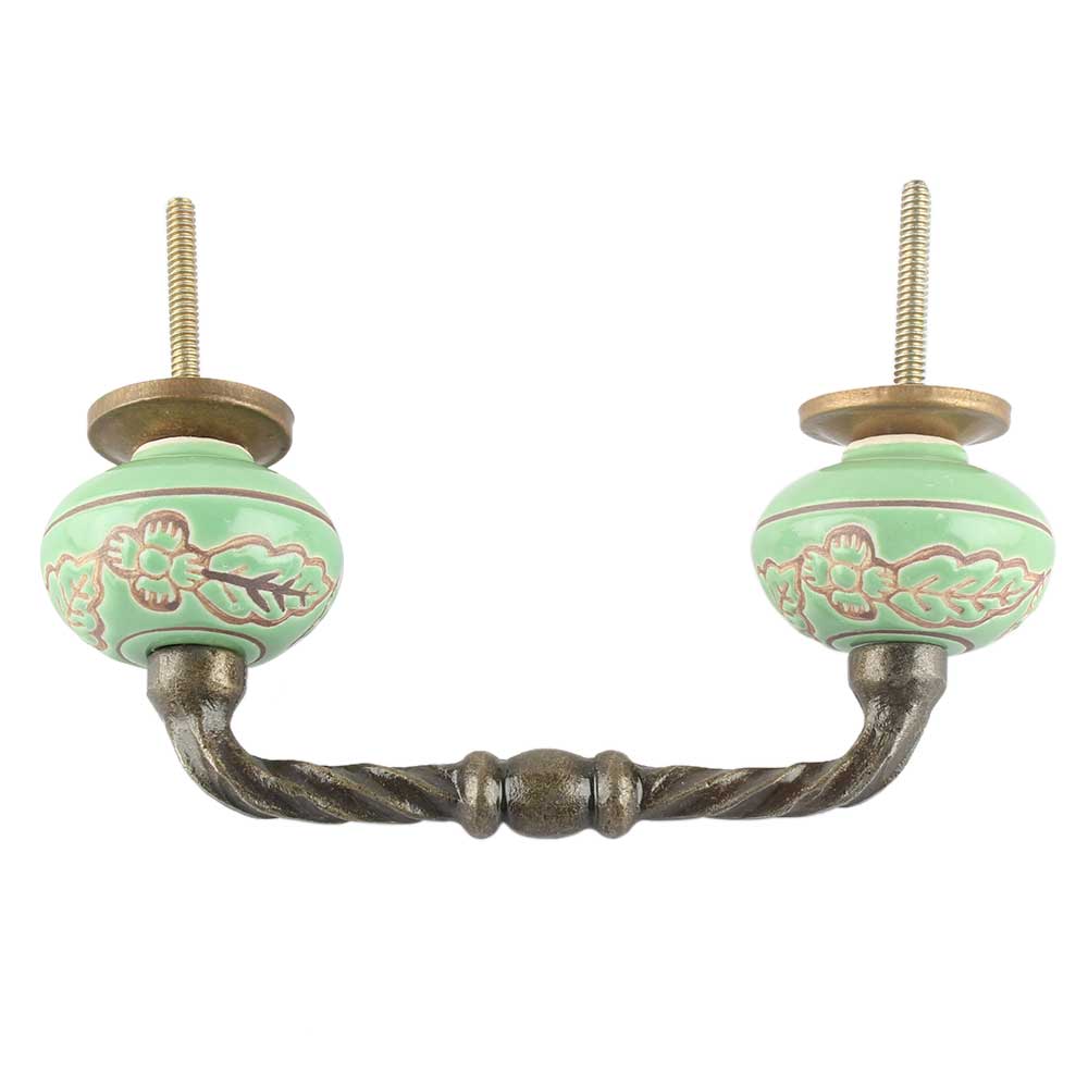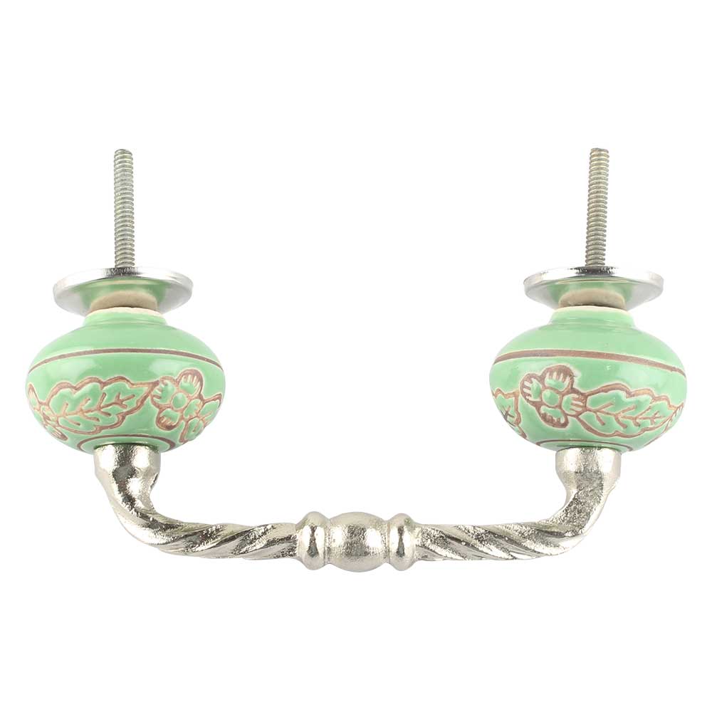 Pea Green Leaf Flower Etched Ceramic Cut Bridge Handle