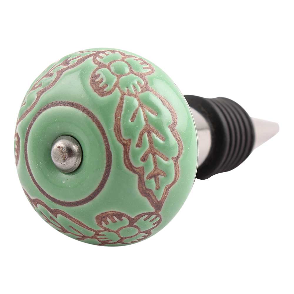 Pea Green Leaf Flower Etched Ceramic Wine Stopper