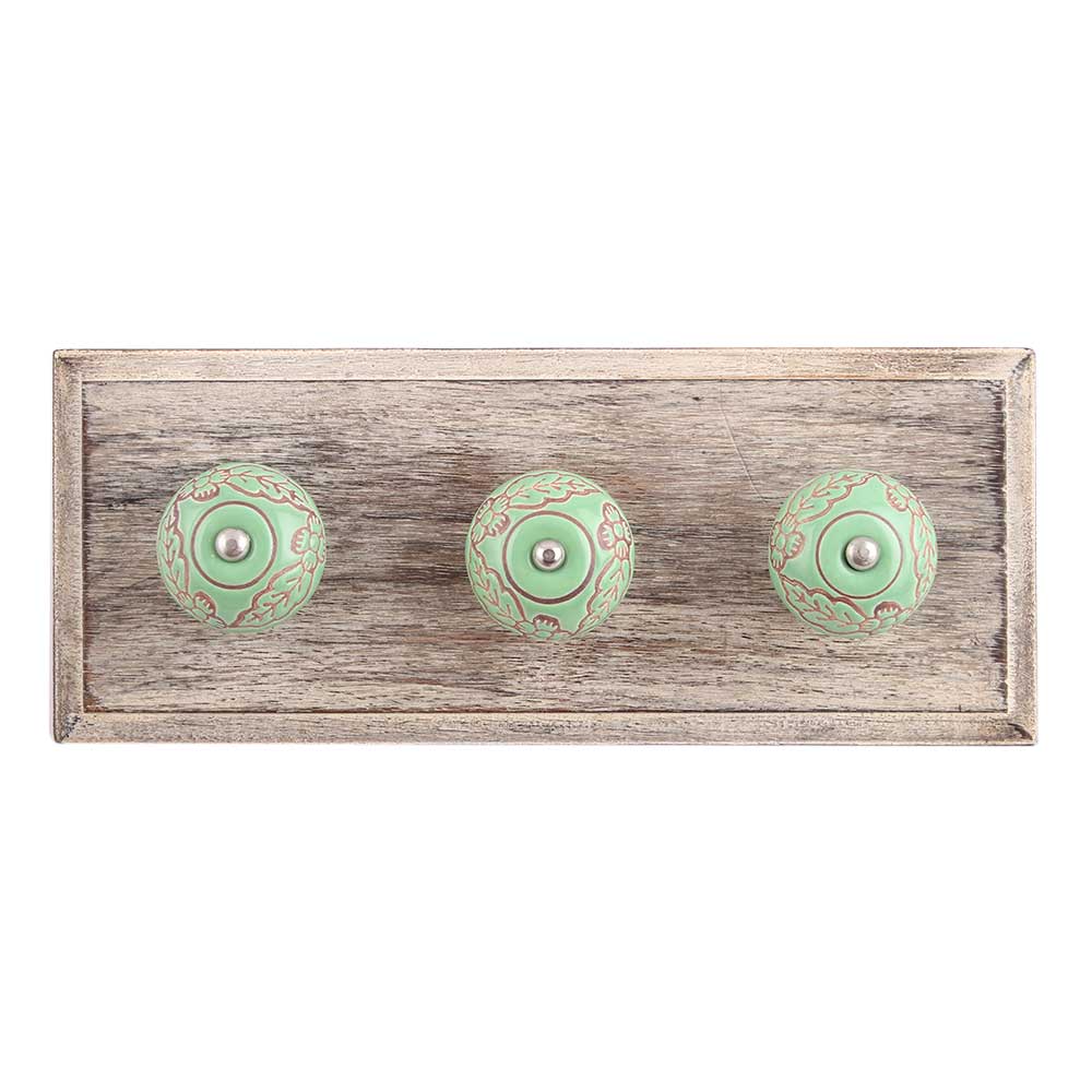 Pea Green Leaf Flower Etched Ceramic Wooden Hooks