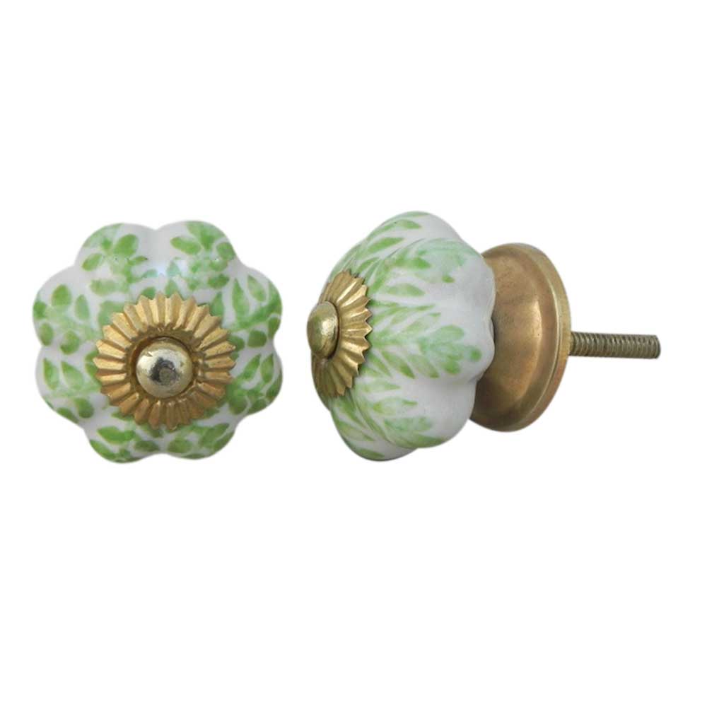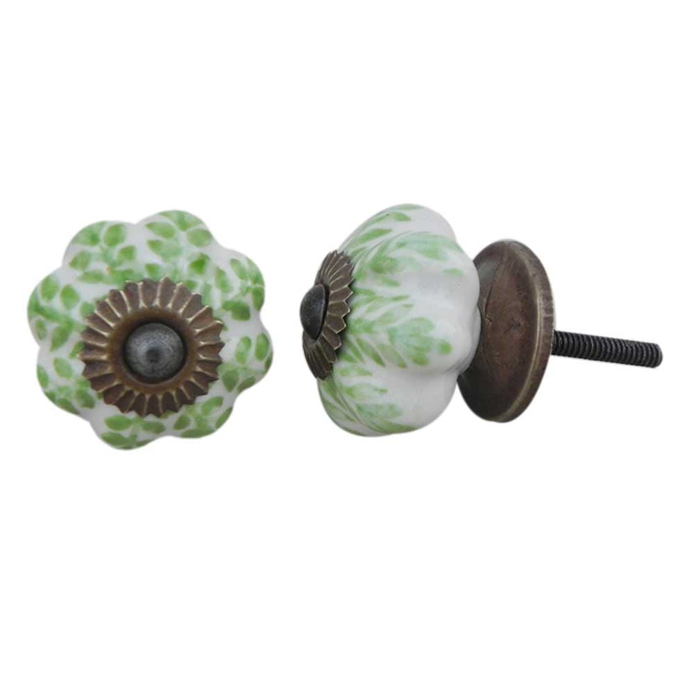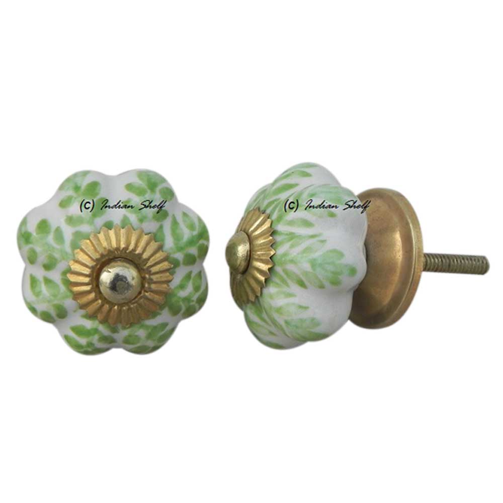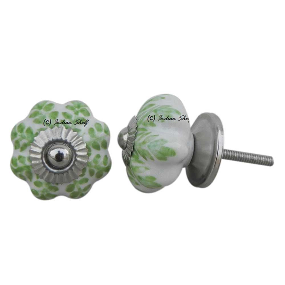 Pea Green Leaf Medium Melon Ceramic knob. Ideal for kitchen cabinets, kitchen drawers, dining room, bed room, chest drawers, dressing tables, almirah
