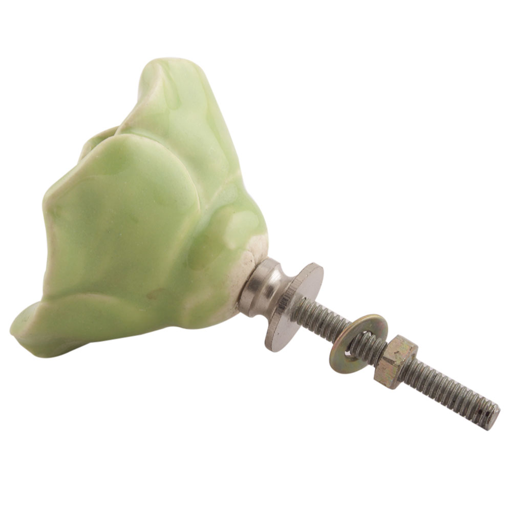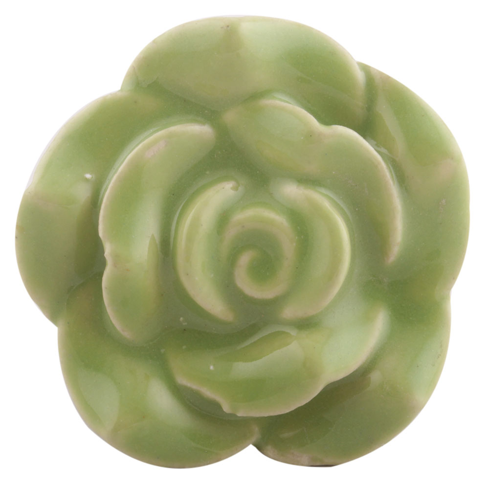 Pea Green Rose Ceramic Flower Cabinet Knob