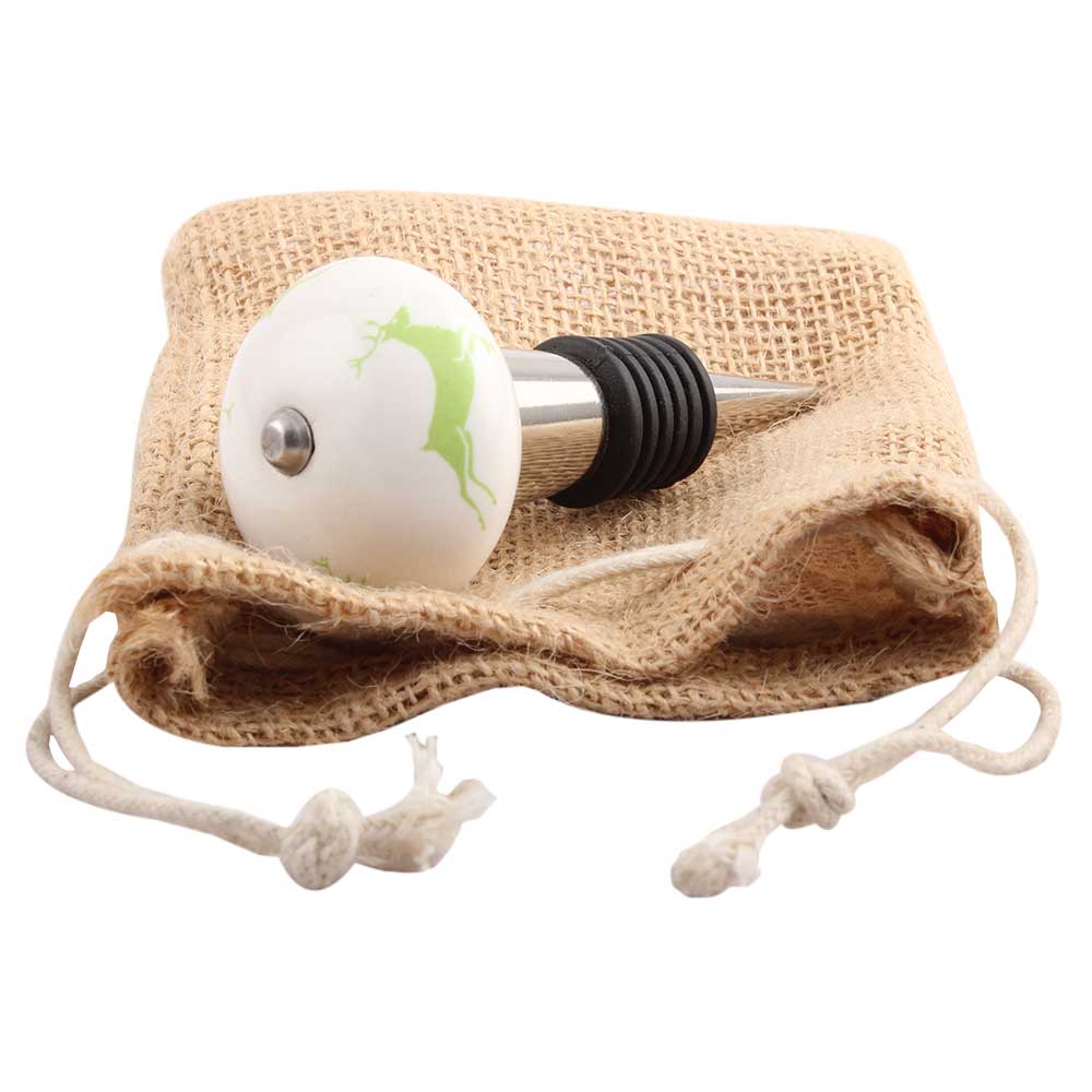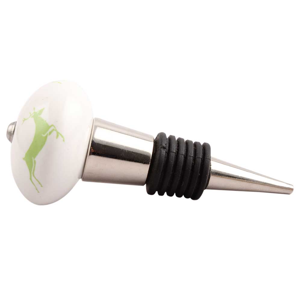 Pea Green Runing Rein Deer Pattern Ceramic Wine Stopper