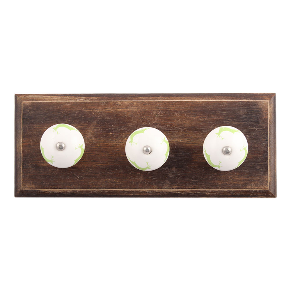 Pea Green Running Rein Deer Pattern Ceramic Wooden Hook. A Perfect Complement to the Soft Tone of the Wood are these White Traditional Hat & Coat Hook Made of Genuine Porcelain and Brass. It can be use to Hang Jewellery, Leashes, Towels, Scarves, Light Weight Sweaters, Caps Etc.