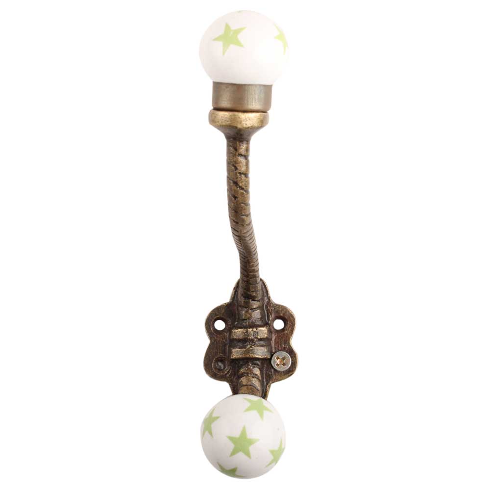 Pea Green Star Ceramic Floral Iron Hooks-EHG-102