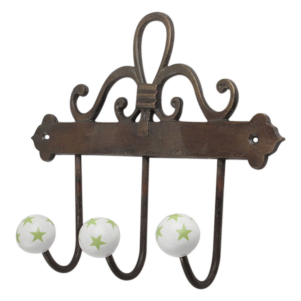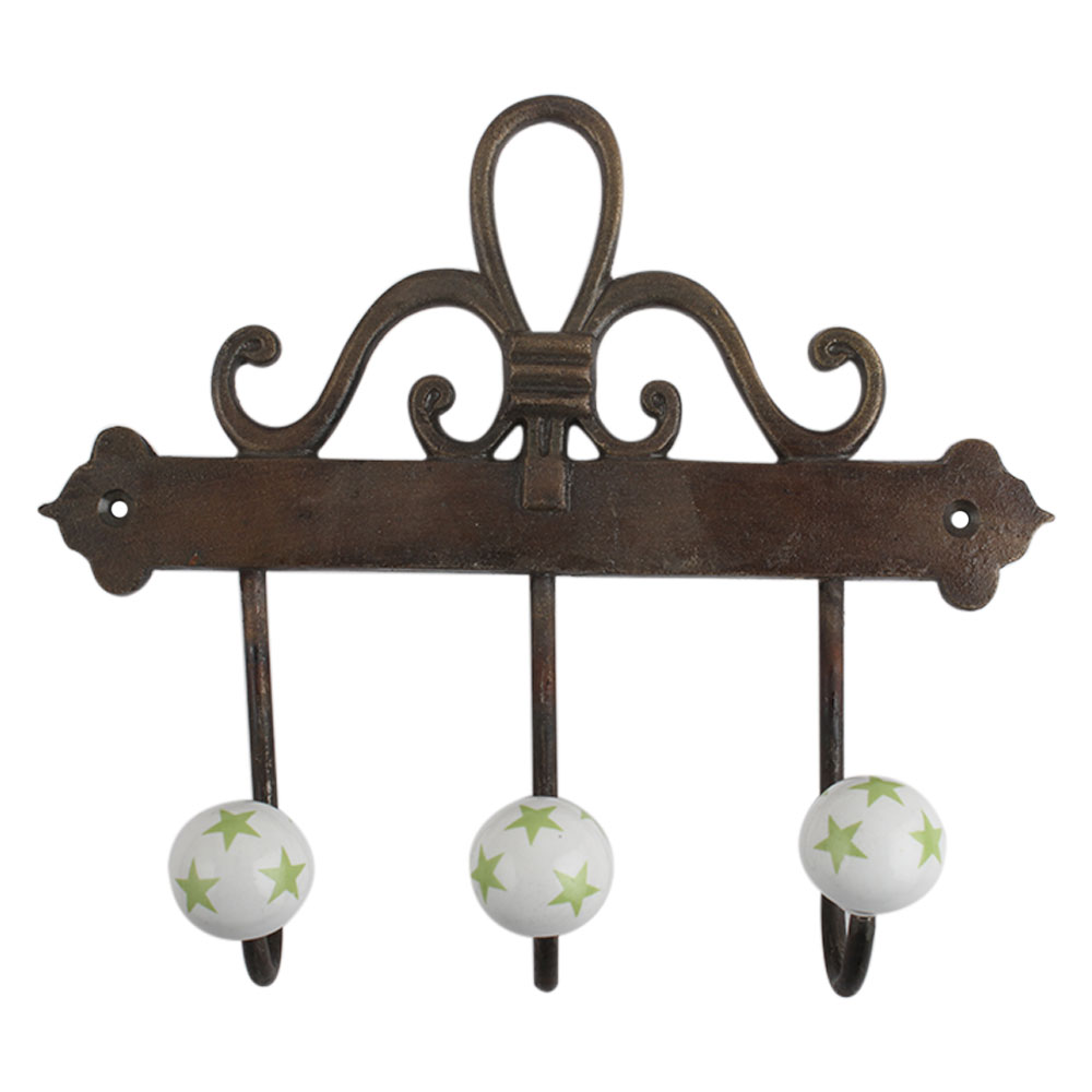 Pea Green Star Ceramic Iron Hook. A Perfect Complement to the Soft Tone of the Wood are these White Traditional Hat Coat Hook Made of Genuine Porcelain and Brass. It can be use to Hang Jewellery, Leashes, Towels, Scarves, Light Weight Sweaters, Caps Etc.