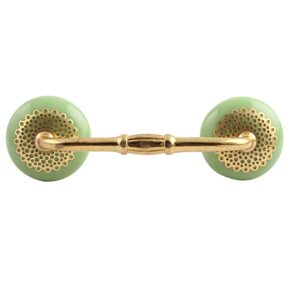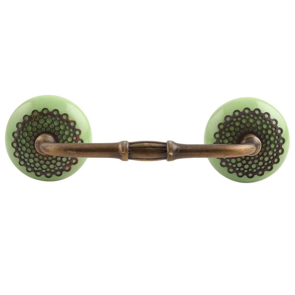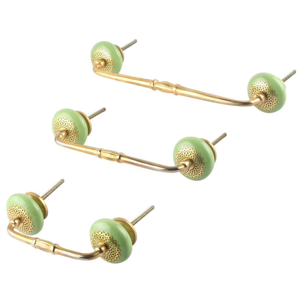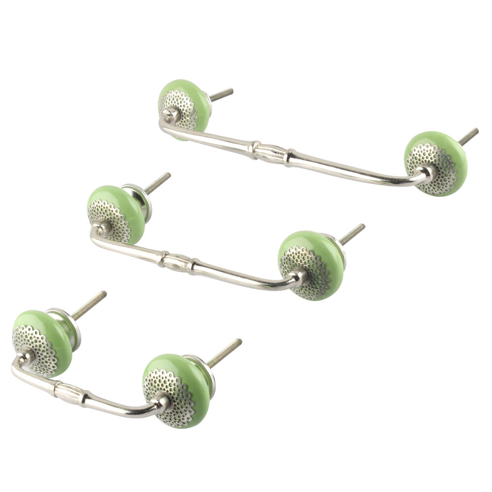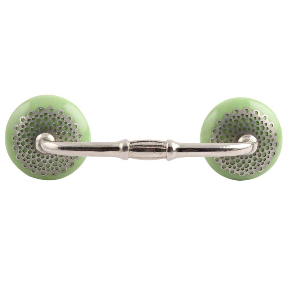 Pea Green Strewn Flat Ceramic Bridge Handle. Ideal for Drawer, Dresser, Cabinet, Wardrobe, Cupboard and Almirah.