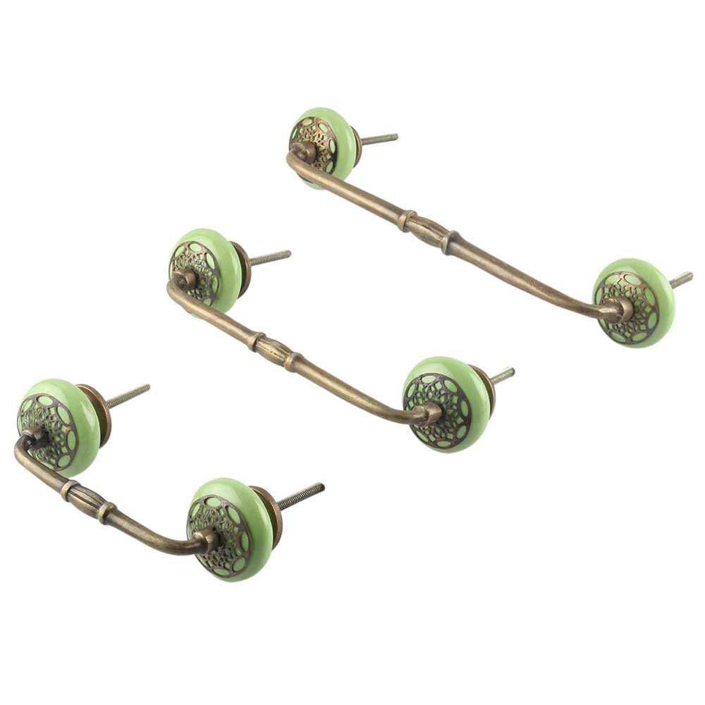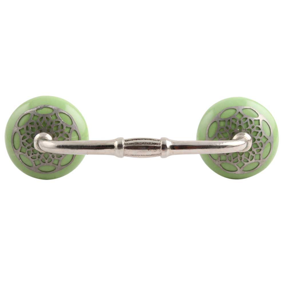 Pea Green Strewn Flat Ceramic Bridge Handle. Ideal for Drawer, Dresser, Cabinet, Wardrobe, Cupboard and Almirah.