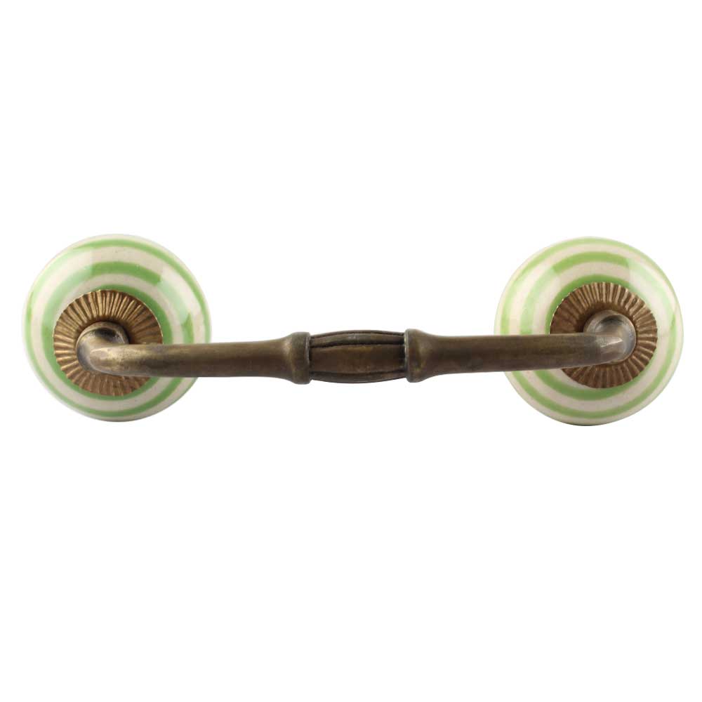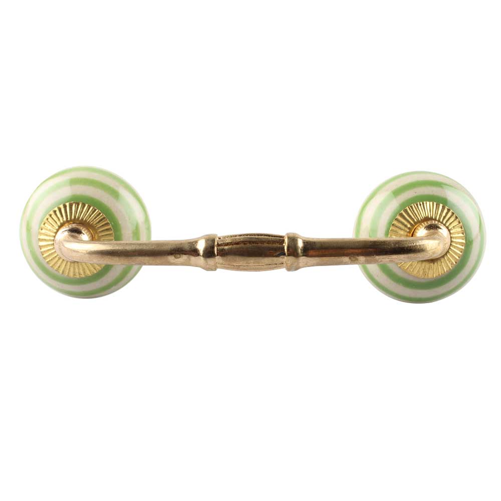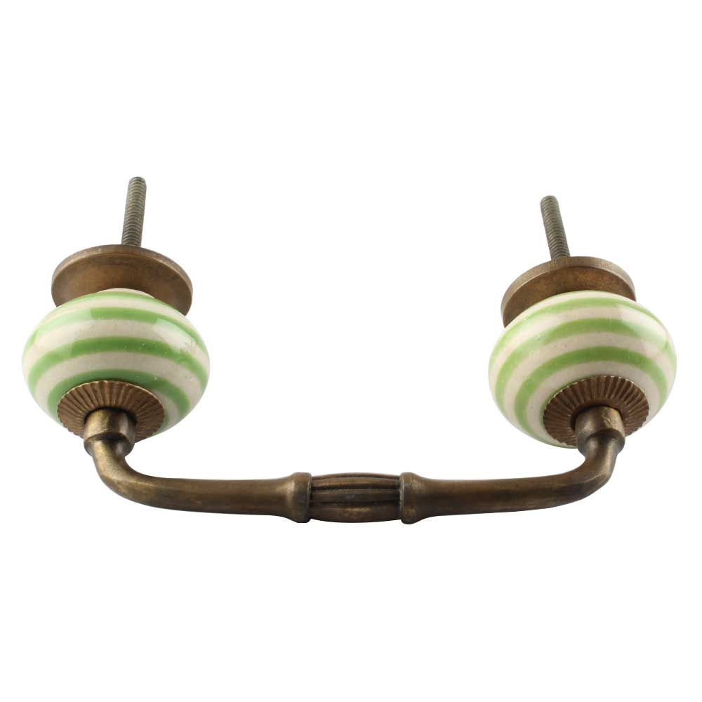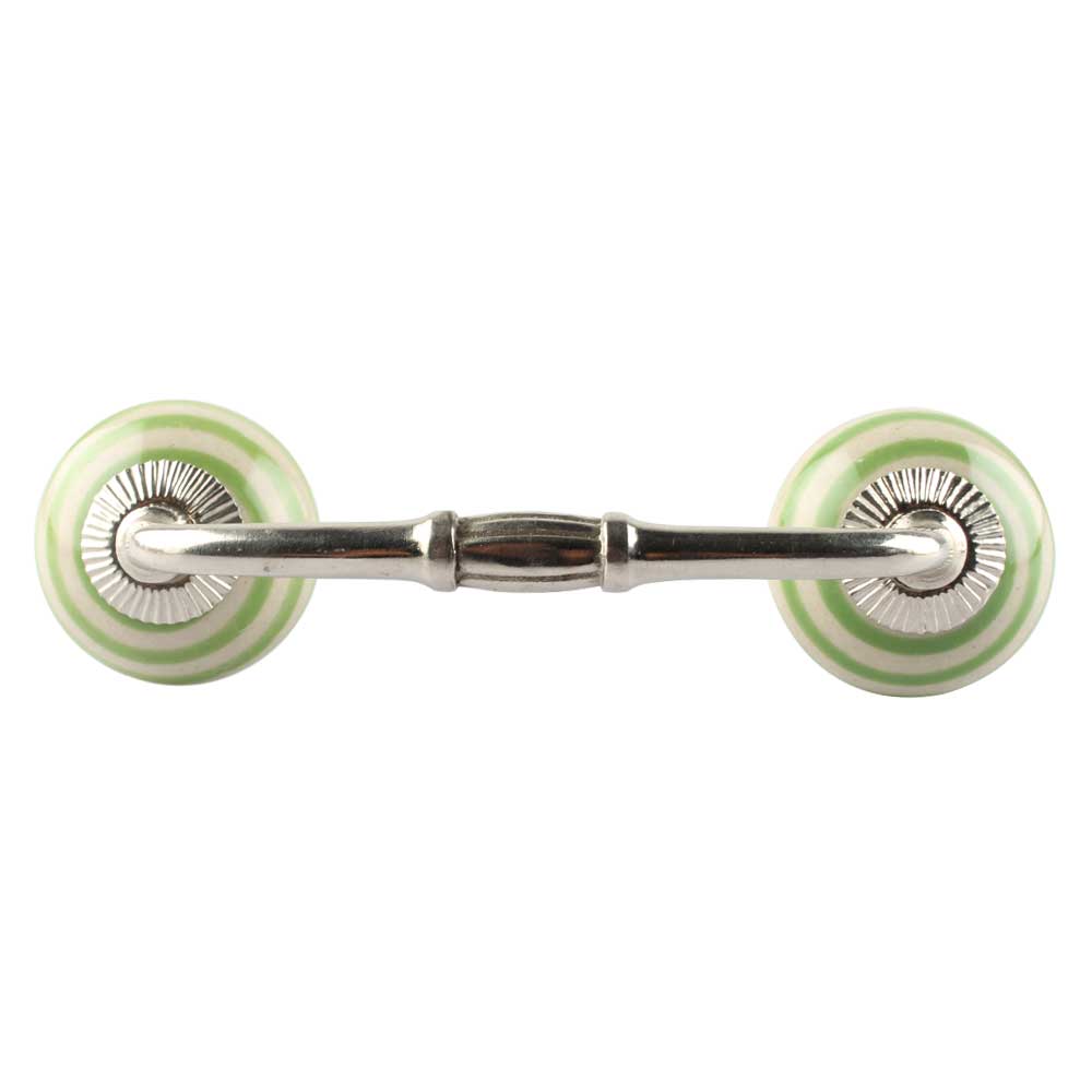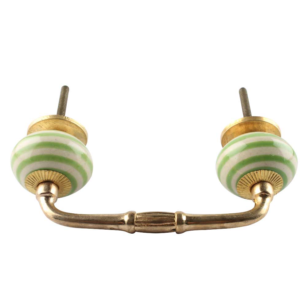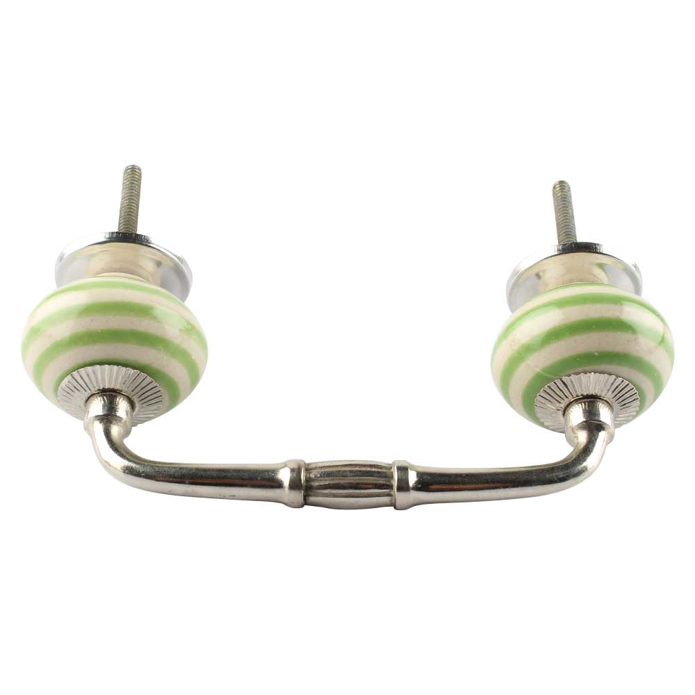 Pea Green Striped Ceramic Bridge Handles. Ideal for Drawer, Dresser, Cabinet, Wardrobe, Cupboard and Almirah etc.
