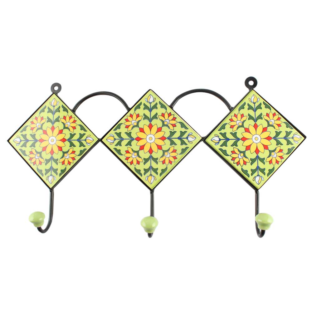 Pea Green Sunflower Ceramic Tile Wall Hook