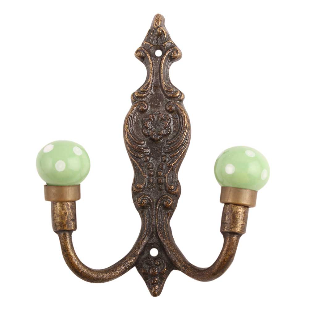 Pea Green White Dot Ceramic Iron Hook. When Put on Wall or Cabinet It Gives A Sturdy Look. This Hook is Strong Enough to Hold Your Cloths, Keys, Tea Cups, Coffee Mugs, Hand Towels Etc
