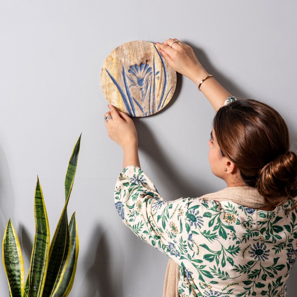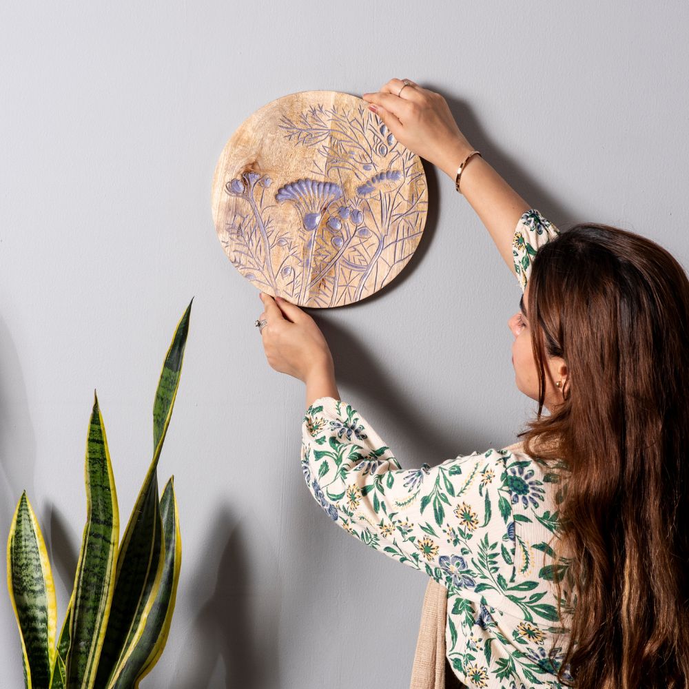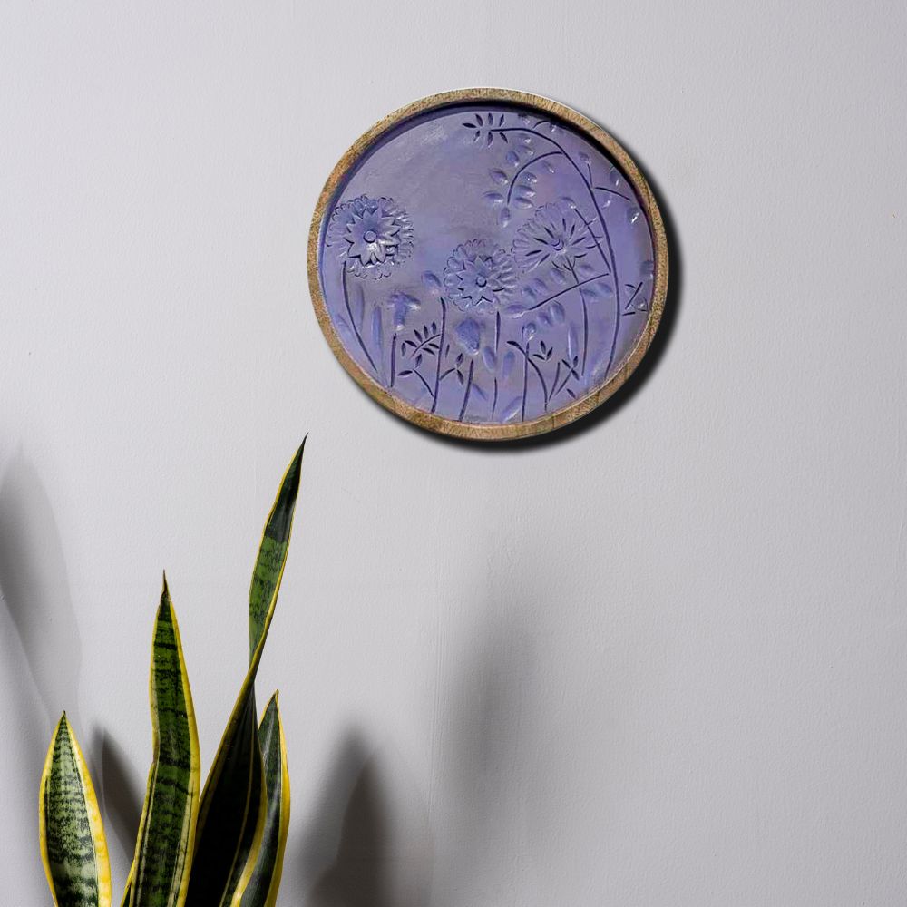 Bring the soothing charm of lavender fields into your home with this exquisite set of six wooden wall plates. Each piece features delicately etched floral carvings in calming lavender and deep blue shades, offering both elegance and tranquility. Packed & quality-checked by Indianshelf.