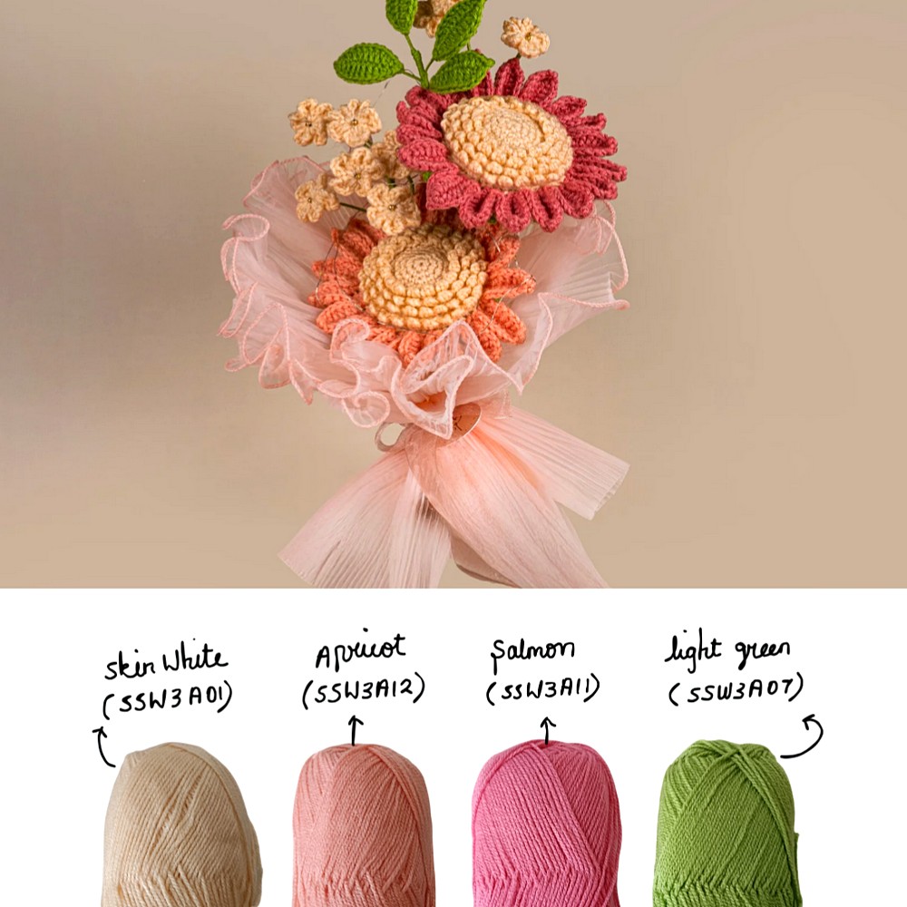 This salmon bloom bunch is lovingly crafted from soft acrylic yarn, fibre filling and craft wire, offering a romantic flourish. Perfect for those who appreciate artisan whimsy, it exudes hand-crafted charm and lasting appeal. Packed and quality-checked by Indianshelf. Each stitch is a testament to traditional artistry.