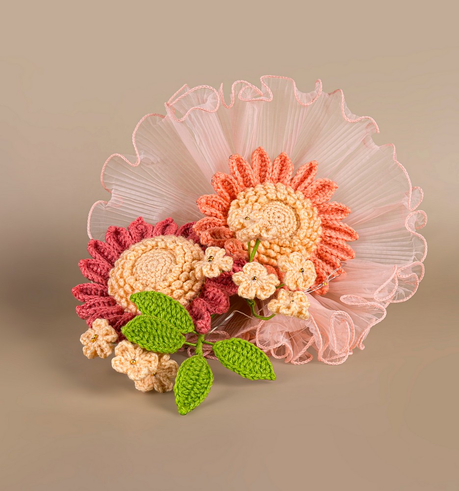 • Expertly crocheted petals and leaves are shaped by hand using premium acrylic yarn and fibre filling, with craft wire giving each bloom bunch a realistic posture
