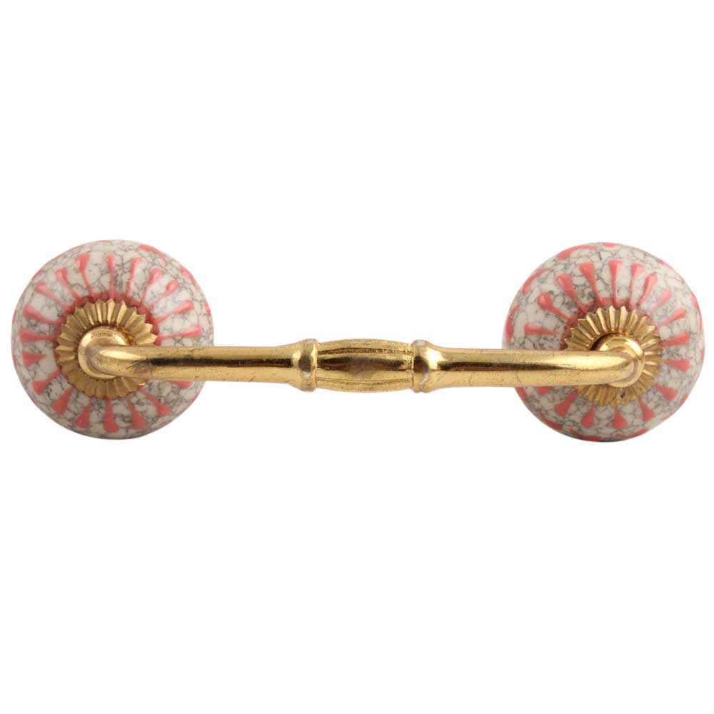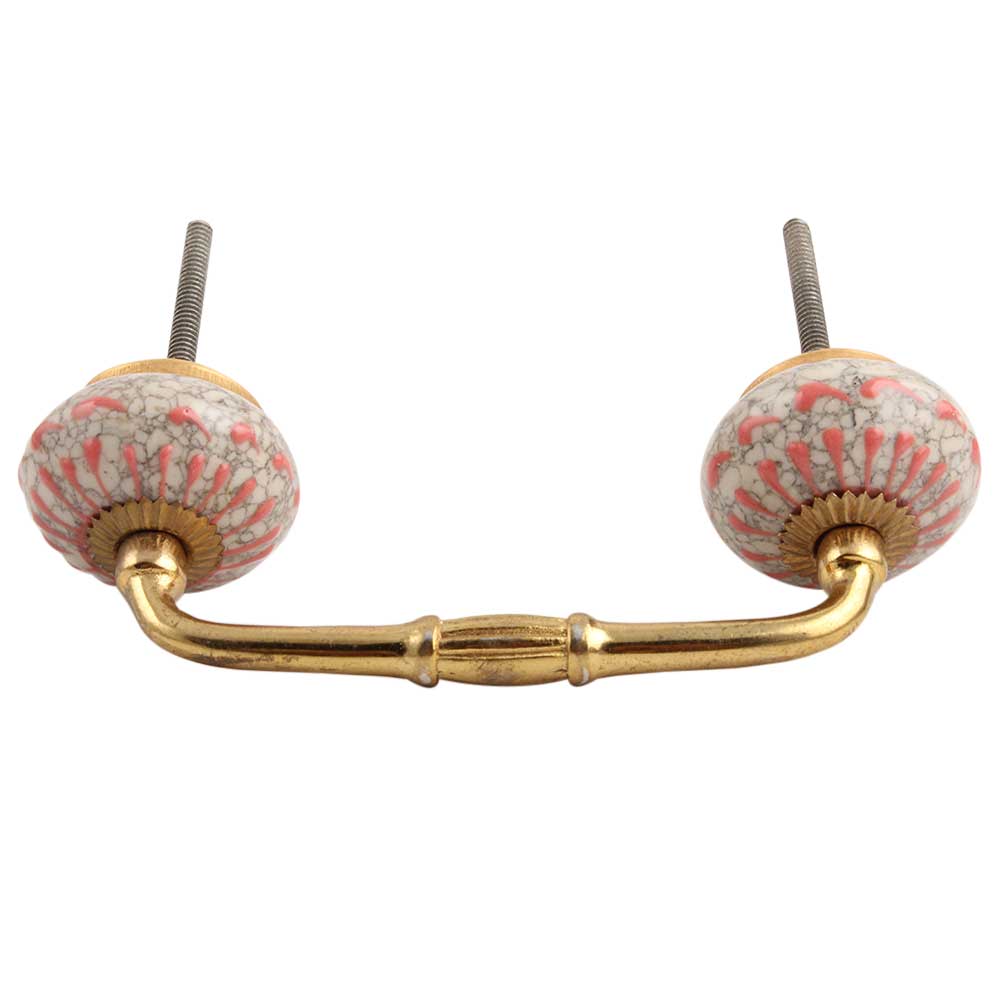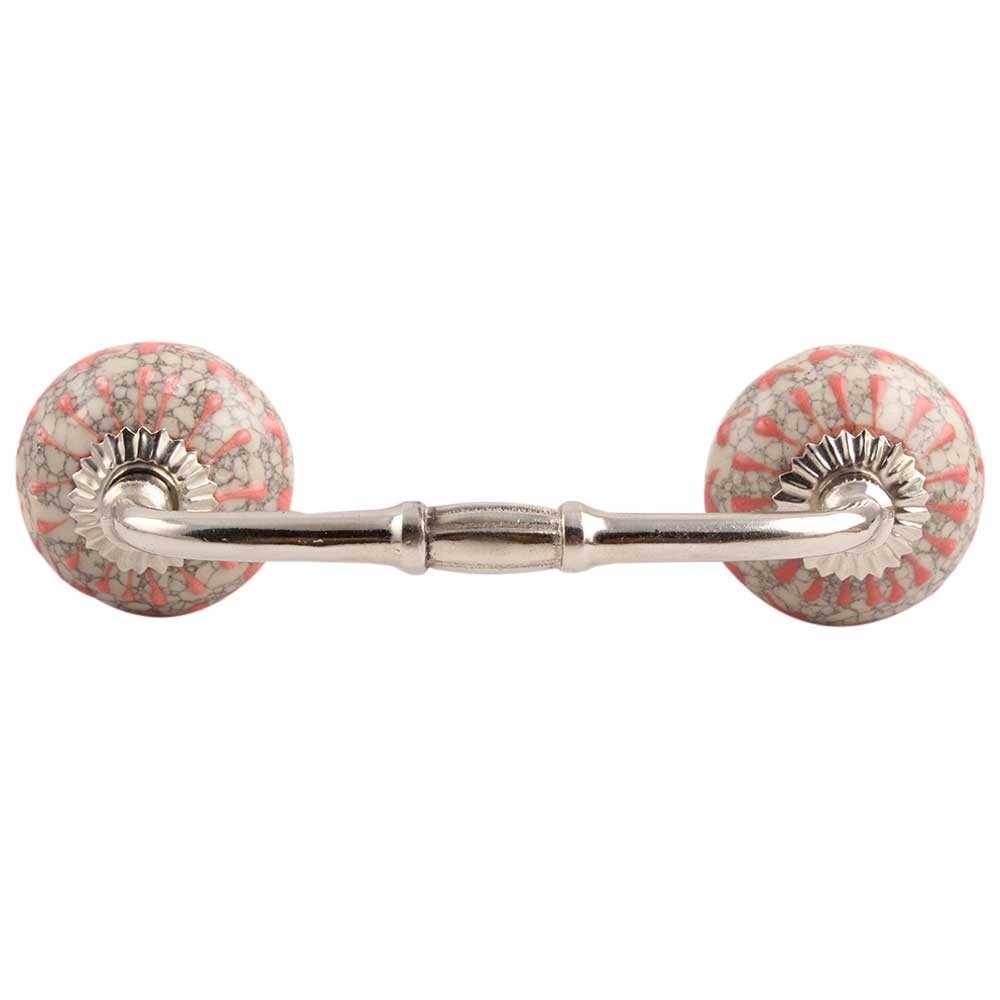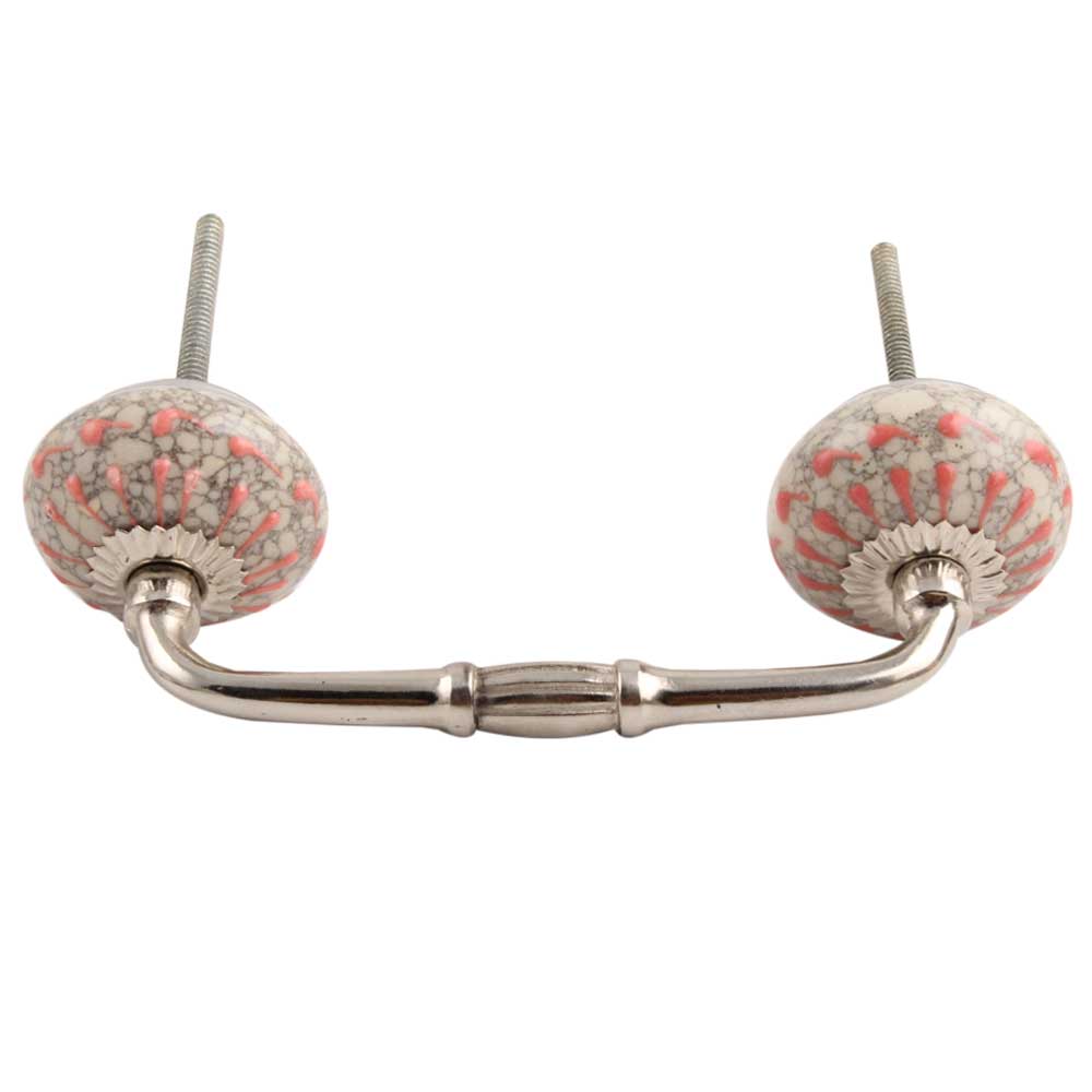 Peach Crackle Wheel Dresser Ceramic Bridge Handle. Ideal for kitchen Cabinet, kitchen Drawer, Dining Room, Bed Room, Chest Drawer, Dressing Table, Almirah.