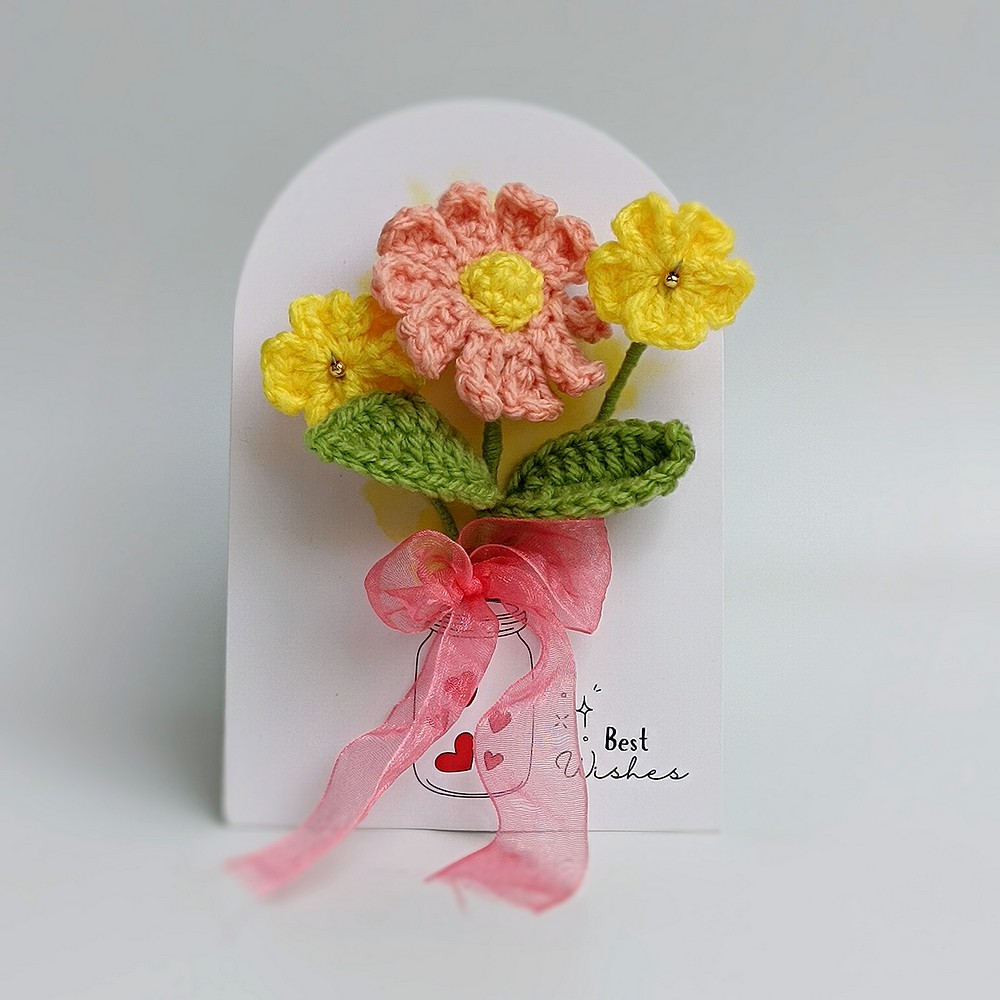 • Expertly crocheted petals and leaves are shaped by hand using premium acrylic yarn and fibre filling, with craft wire giving each single bloom a realistic posture