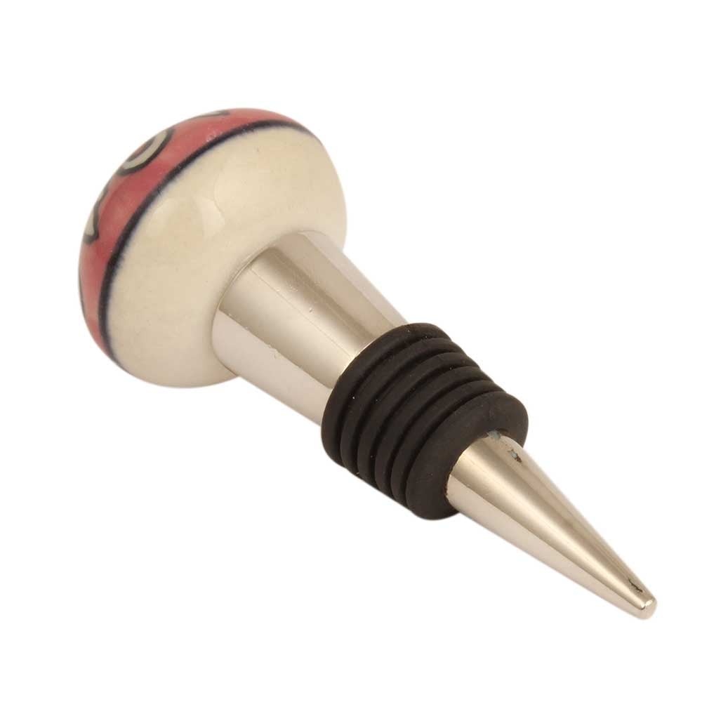 Peach Flower Ceramic Wine Bottle Stopper. Zinc Alloy Wine Bottle Stopper with Attractive Jute Bag Packaging.