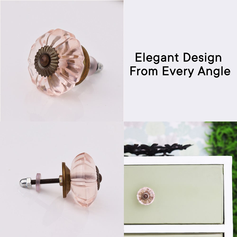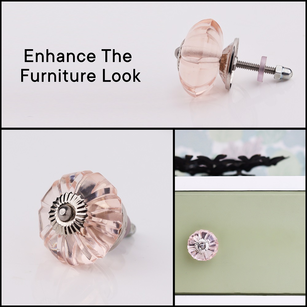 Pink Melon Glass Knobs. Ideal for Drawer, Dresser, Cabinet, Wardrobe, Cupboard and almirah