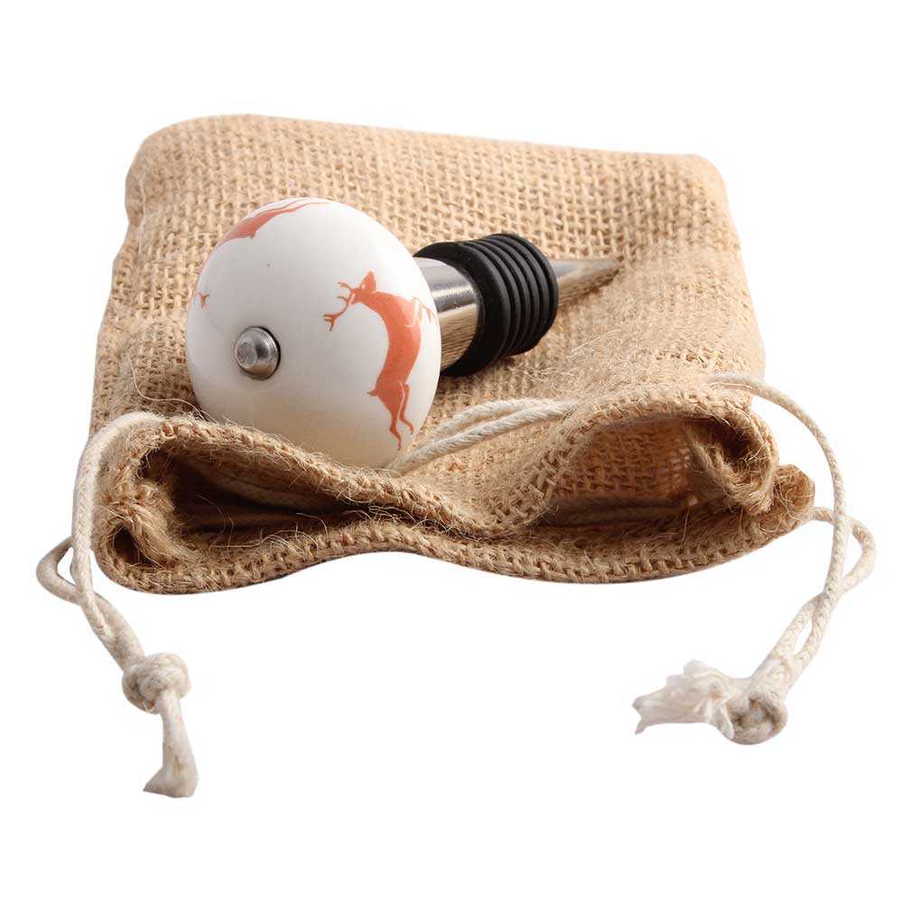 Peach Runing Rein Deer Pattern Ceramic Wine Stopper