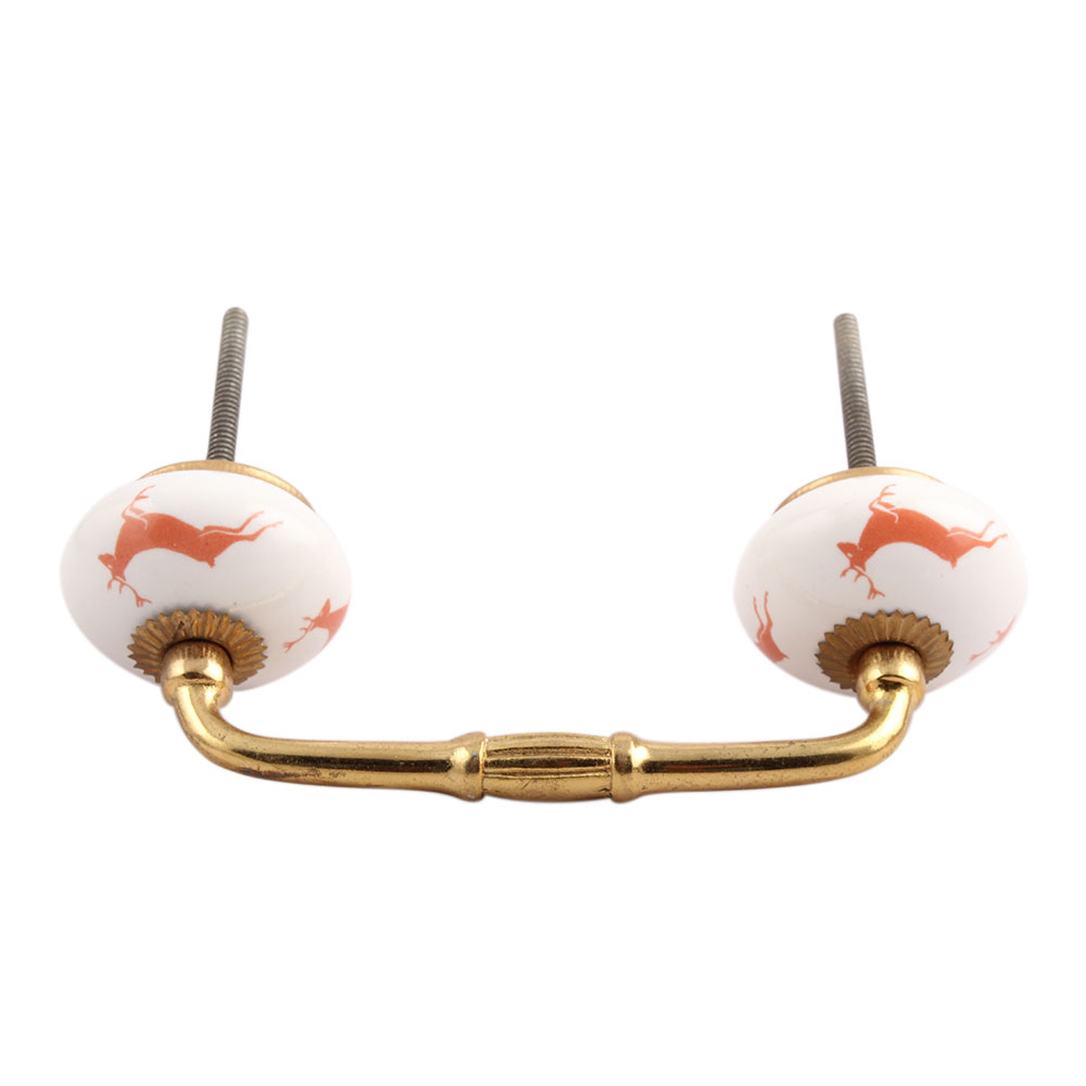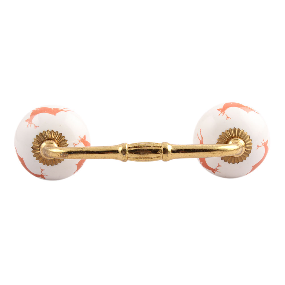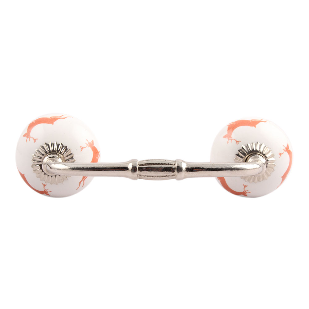 Peach Running Rein Deer Pattern Ceramic Bridge Handle. Ideal for Drawer, Dresser, Cabinet, Wardrobe, Cupboard and Almirah.
