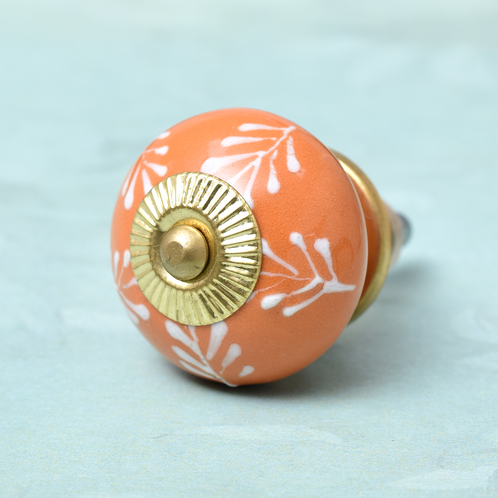 Peach White Leaf Knob