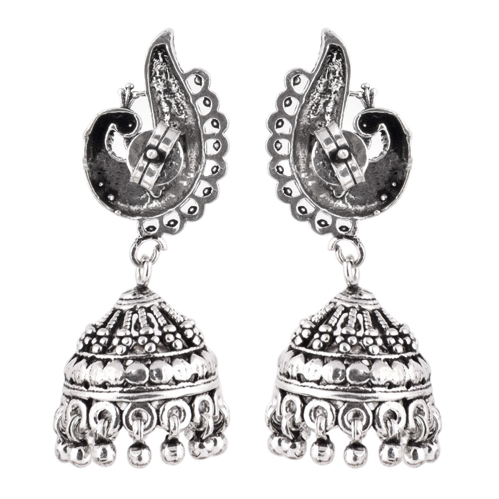 Peacock 92.5 Sterling Silver Earrings Engraved Jhumkis