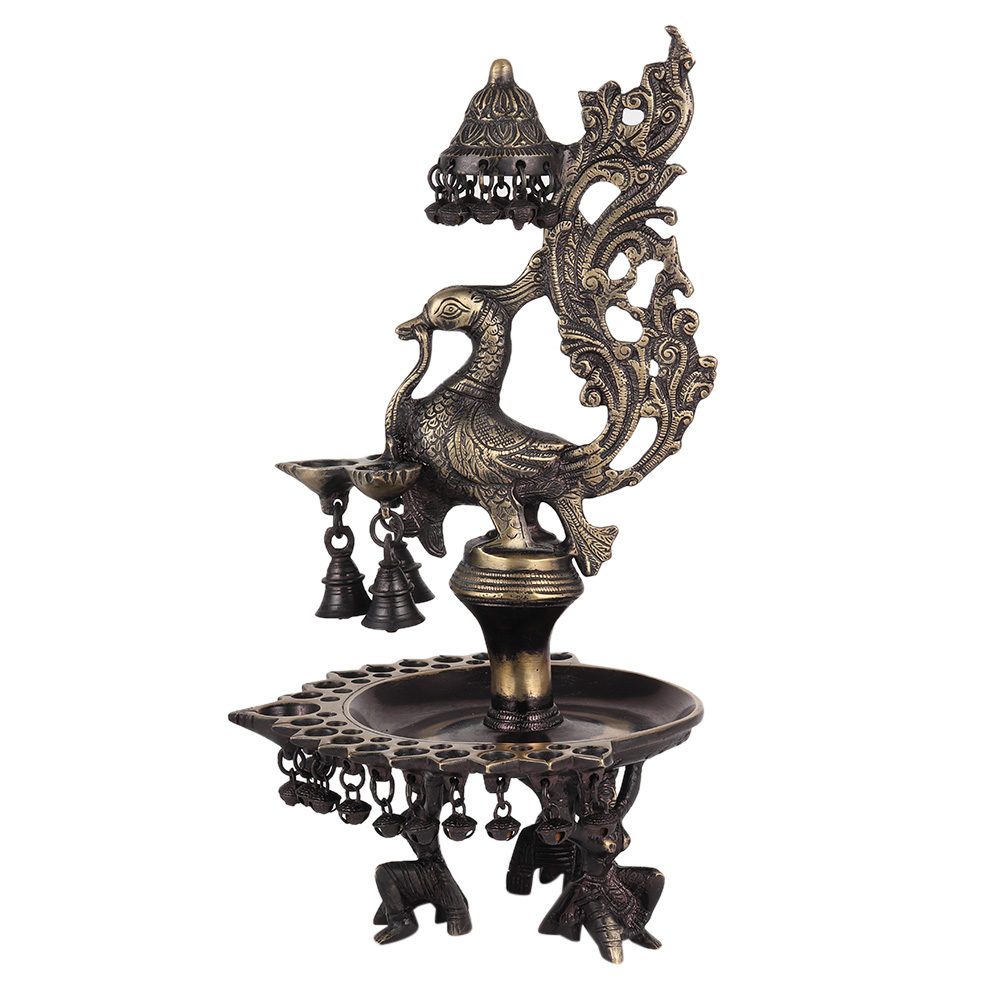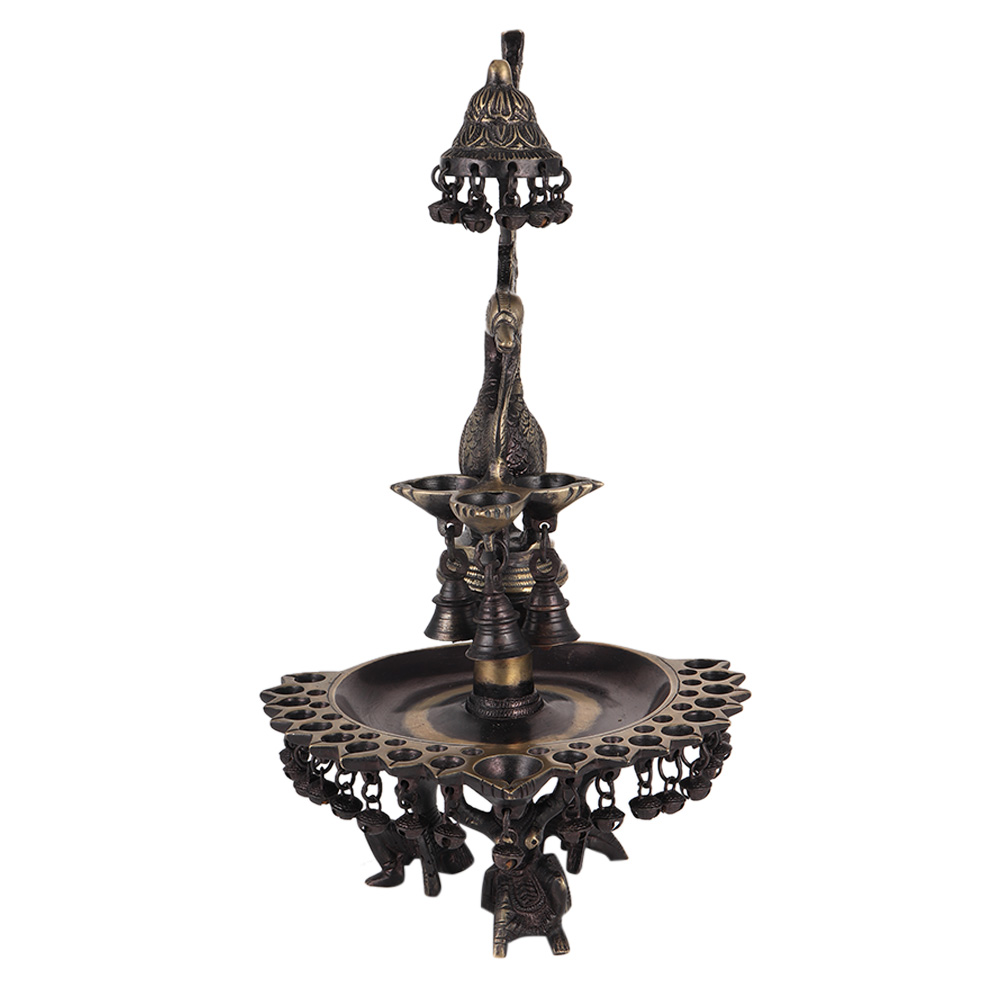 Peacock Design Oil Lamp Brass Diya With Many Bells