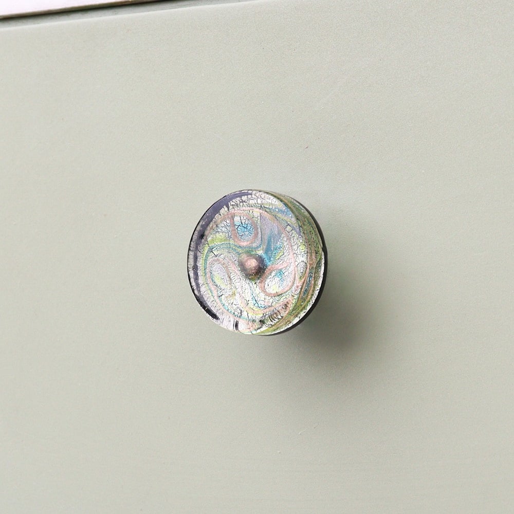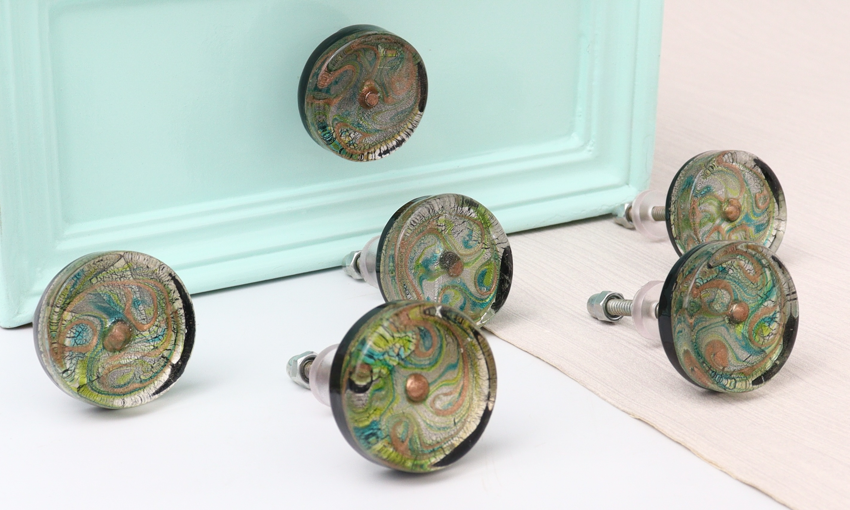 With its vibrant colors, intricate design, and luxurious finish, this knob enhances any piece of furniture, turning it into a stunning focal point. The Peacock Feather Flat Glass Drawer Knob is an ideal choice for adding elegance and creativity to your home.