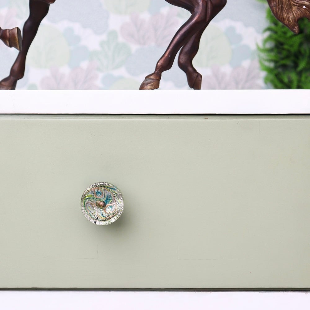 The vibrant peacock feather design, featuring stunning shades of blue, green, and gold, brings the essence of nature into your home. This knob adds a luxurious, nature-inspired element to your furniture, perfect for those who value fine details and elegance.