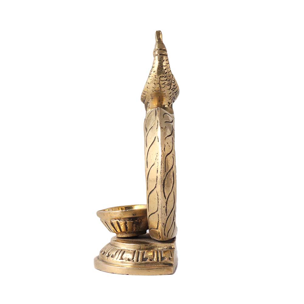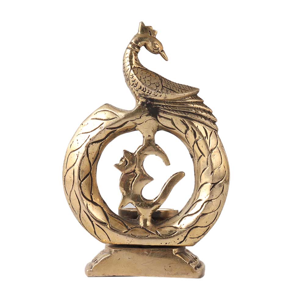 The peacock is connected to Lakshmi in Hinduism, who stands for kindness, patience, and luck. Greek and Roman mythology describes the peacock's tail as having star-shaped "eyes." This stunning lamp in the shape of a peacock holds a diya with an om emblem fastened to it. Handmade by Indian artists. Additionally, you can use them as decorations in your home's living room or bedroom, or you can use them in place of candles on a dining table. Excellent for giving as a gift at weddings, anniversaries, housewarmings, new business launches, award ceremonies, etc.