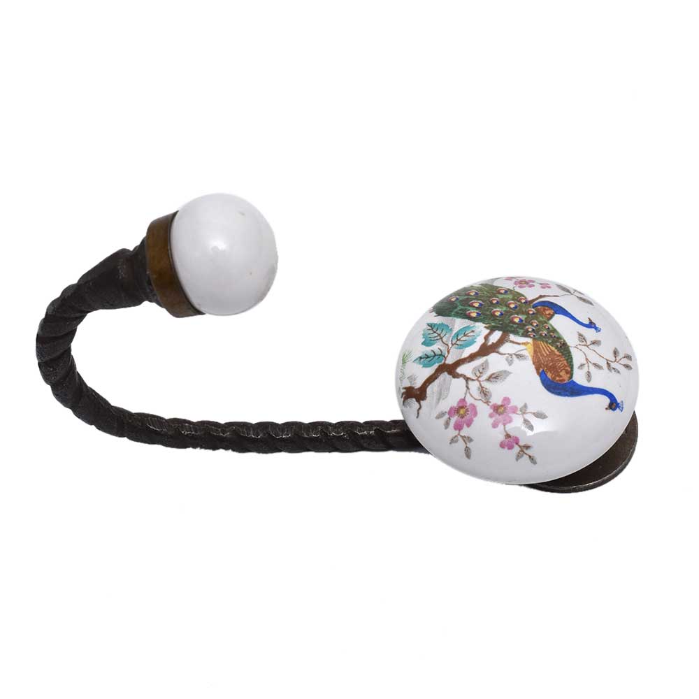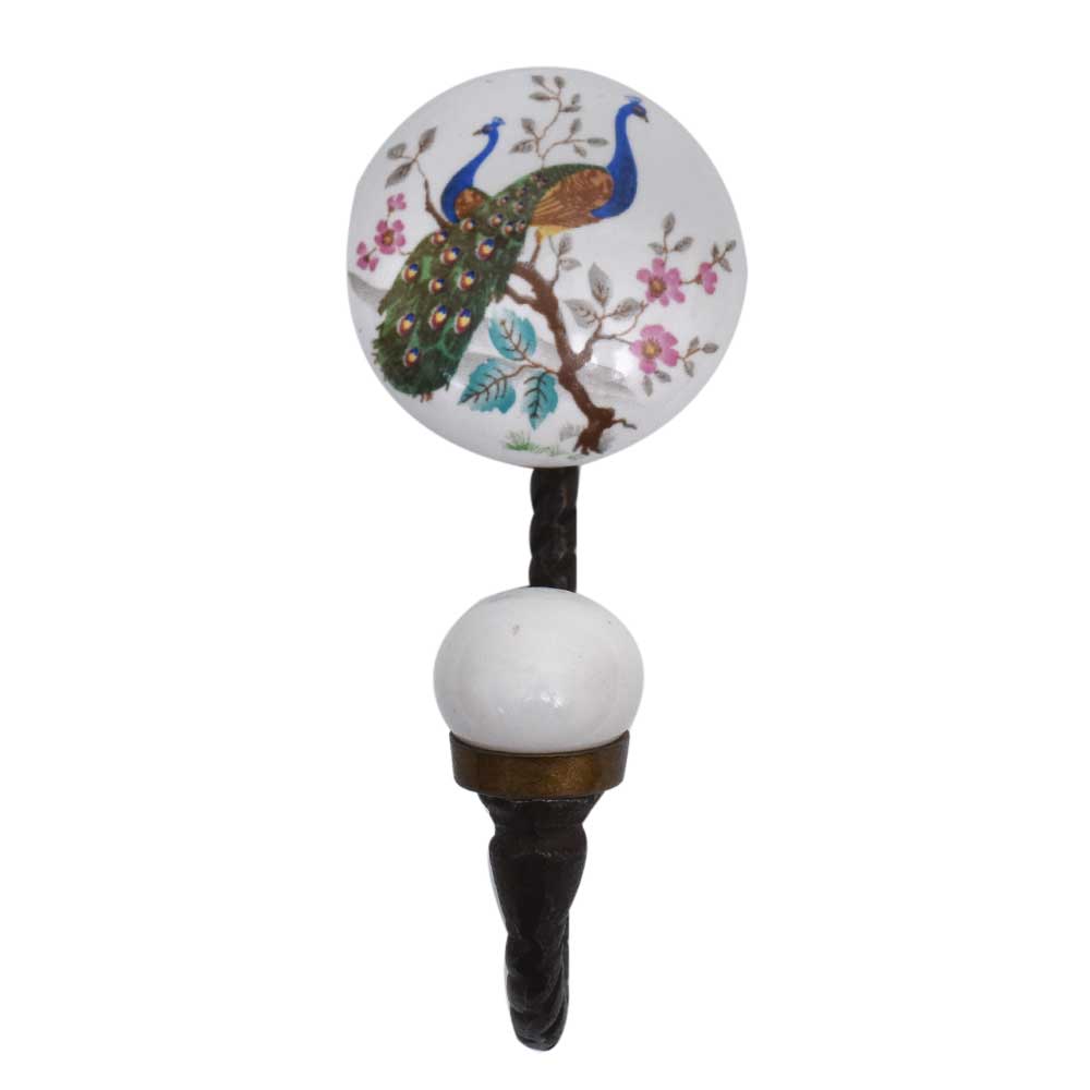 Bring vibrant culture and vintage charm into your home with the Peacock Scenery Flat Ceramic Metal Hook – Antique Fitting. This handcrafted wall hook features a beautifully illustrated ceramic tile showcasing a traditional peacock scenery set in an antique-finished metal frame. Merging utility with artistic expression, it not only serves as a functional hook for hanging essentials but also as a miniature wall art piece that celebrates Indian heritage and craftsmanship.