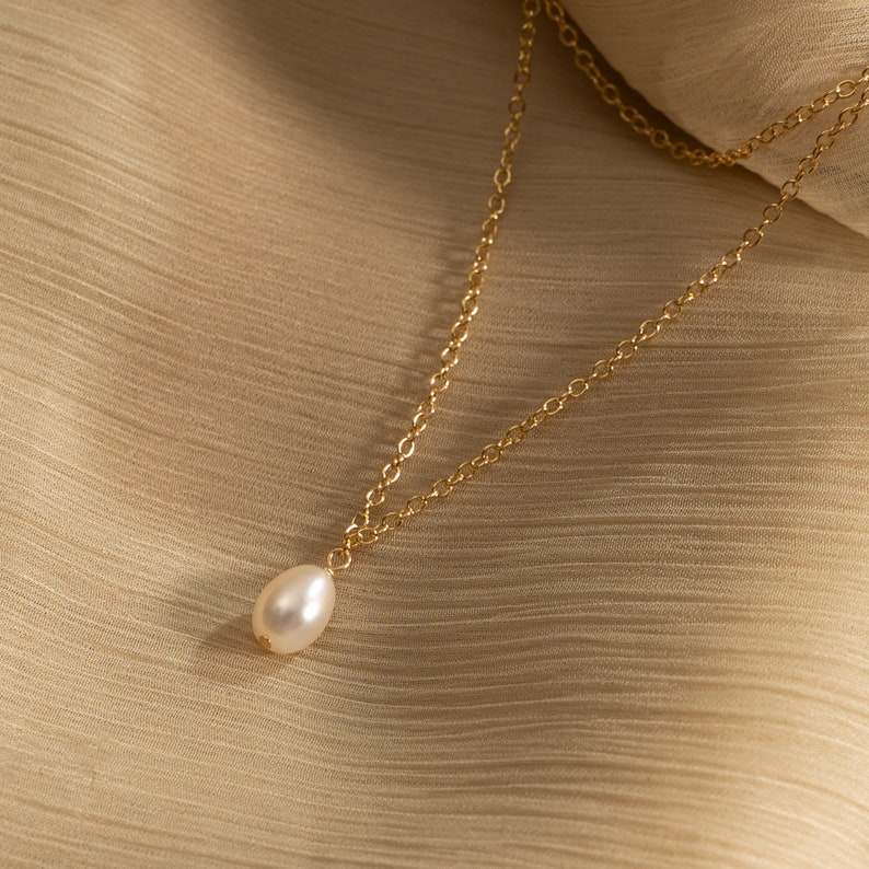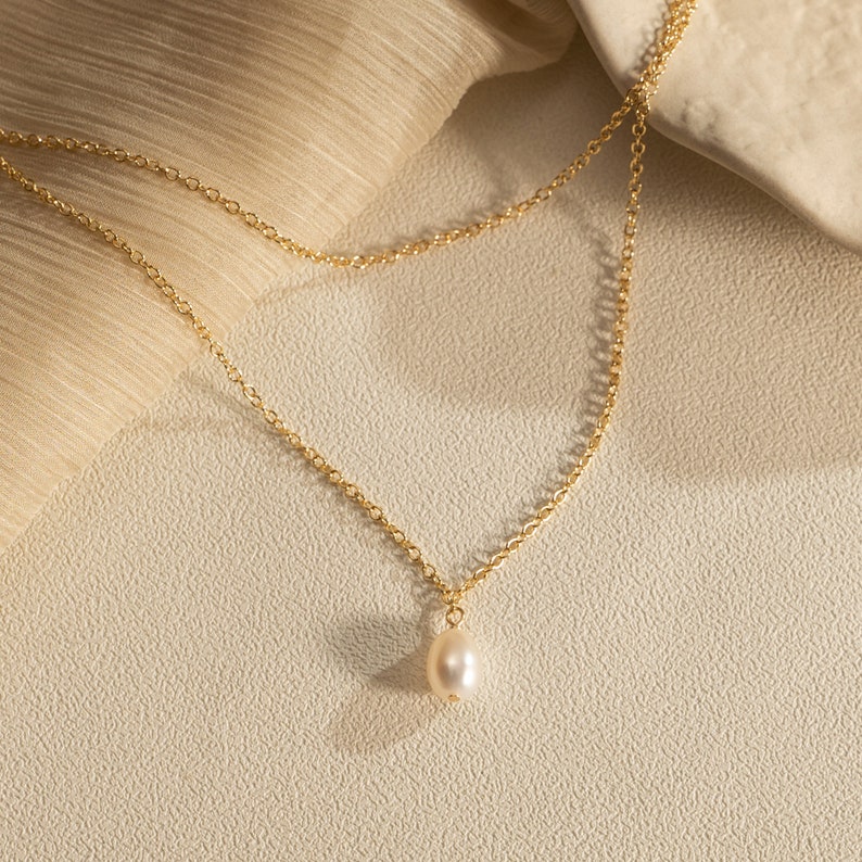 Pearl Drop Two-Layer Necklace – Brass with 22K Gold Plating | Handmade Jewelry (20 Inches) Graceful and modern, this Pearl Drop Two-Layer Necklace adds effortless elegance to any outfit. Handcrafted from high-quality brass and finished in radiant 22K gold plating, it features two delicately layered chains — one plain and one adorned with a luminous natural pearl drop that gently catches the light. With a flattering 20-inch length, this necklace offers a soft layered look that's perfect for everyday styling or special occasions. The natural pearl symbolizes purity and calm, while the dual-chain design brings dimension and sophistication. Each piece is handmade to order by skilled artisans and takes 7–10 days to complete, ensuring detailed craftsmanship and a premium finish. Product Highlights: