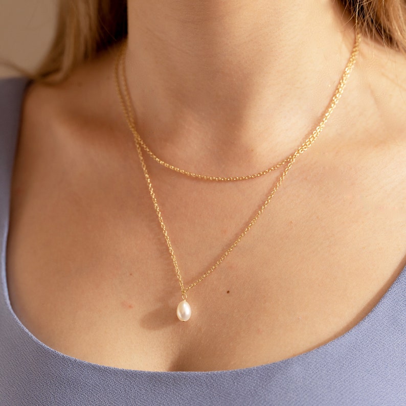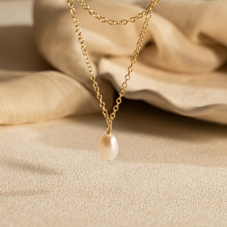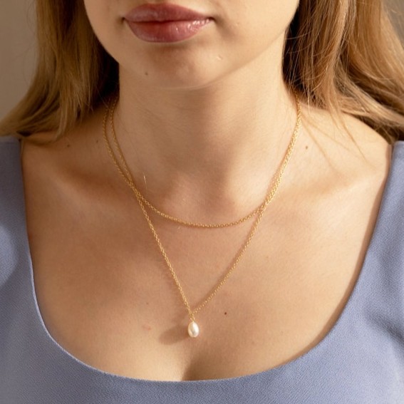 The necklace features a high-quality pearl selected for its shine and smooth surface.