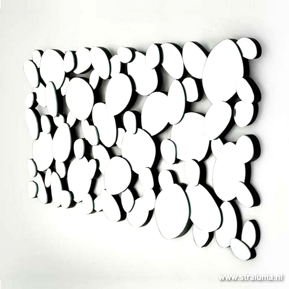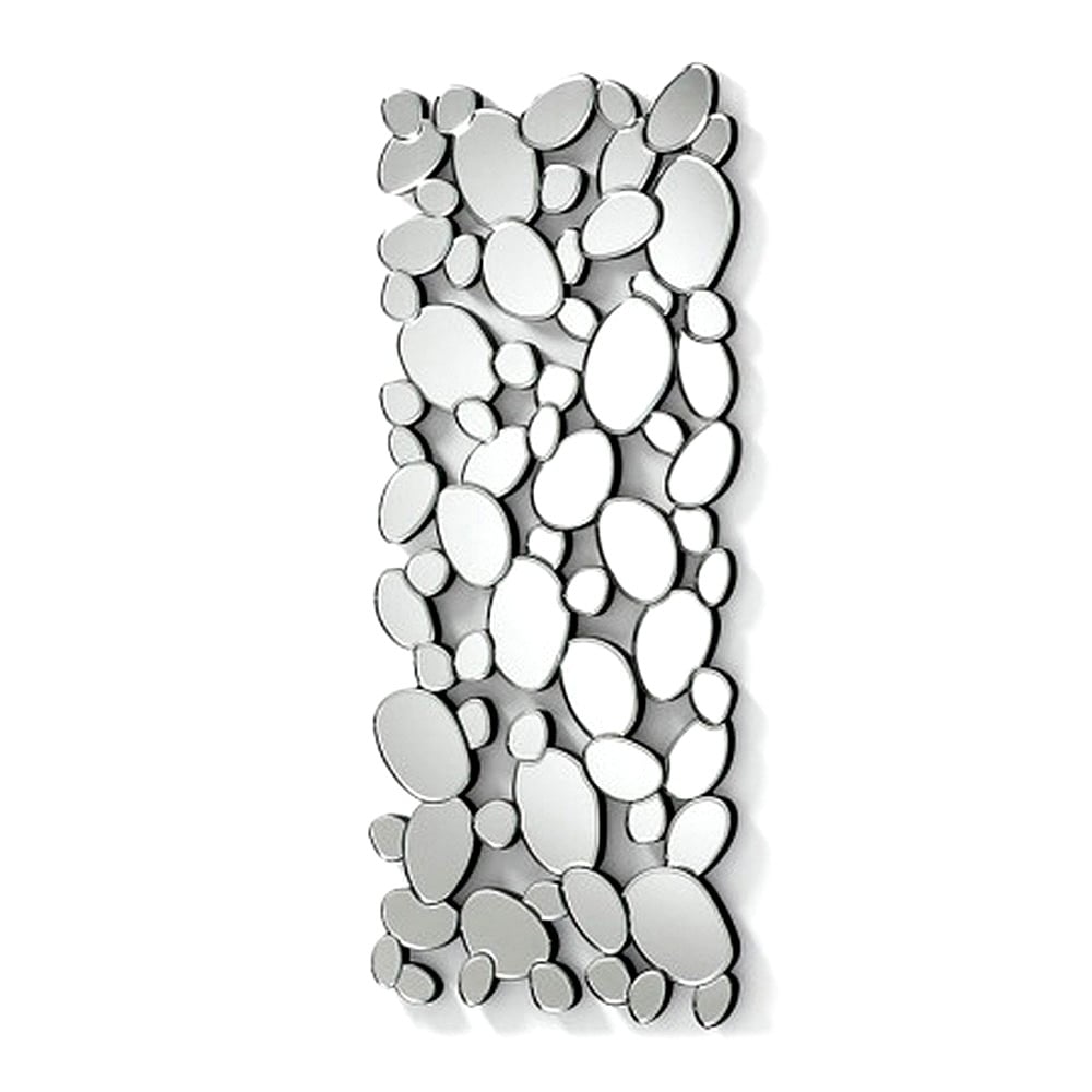 This wall mirror features a sculptural arrangement of oval and rounded mirror pieces clustered together to form a bold vertical panel. The overlapping pebble-like shapes create depth, texture, and visual movement, turning the mirror into a striking wall feature rather than a flat reflective surface. Its organic composition brings softness and dimension to modern interiors.