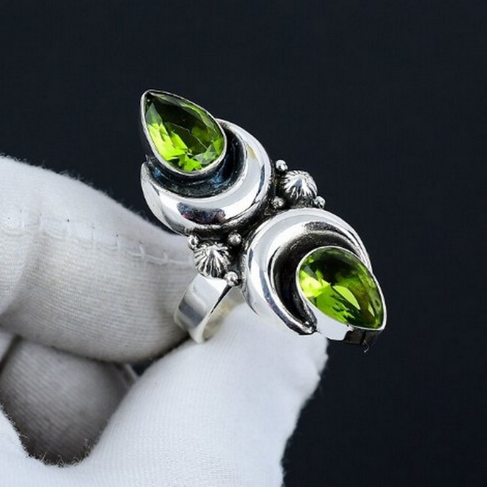 Treasure the allure of our peridot moon 925 sterling silver ring boho jewelry, where natural peridot, 925 sterling silver and crescent moon come together to create a earthy elegance. This ring is for nature lovers, each piece reflecting individuality and care. Packed & quality-checked by Indianshelf.