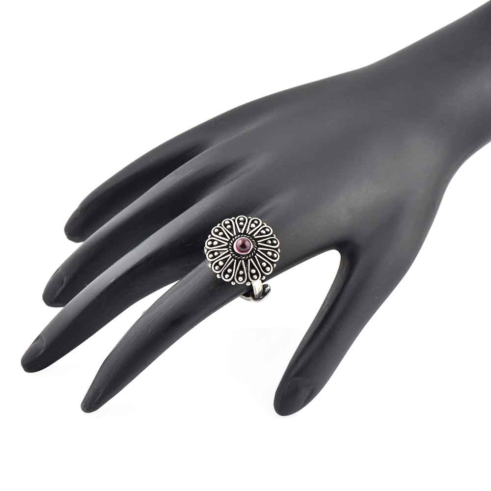 Petals 92.5 Sterling Silver Ring Amethyst Stone Floral Adjustable Design (Free Size)
