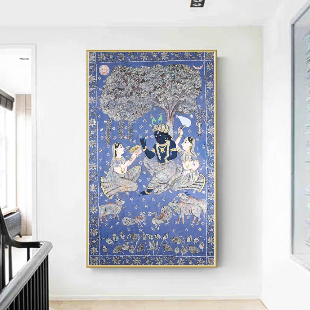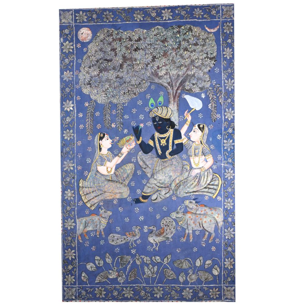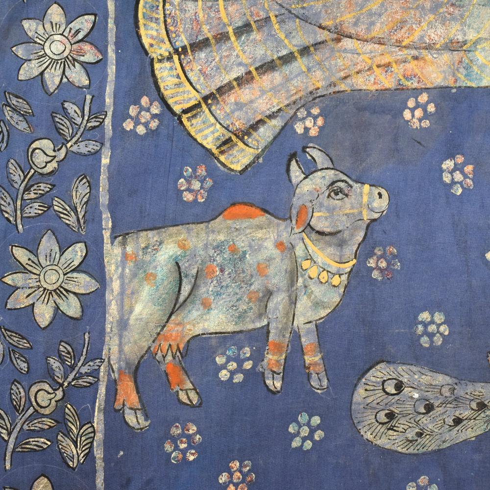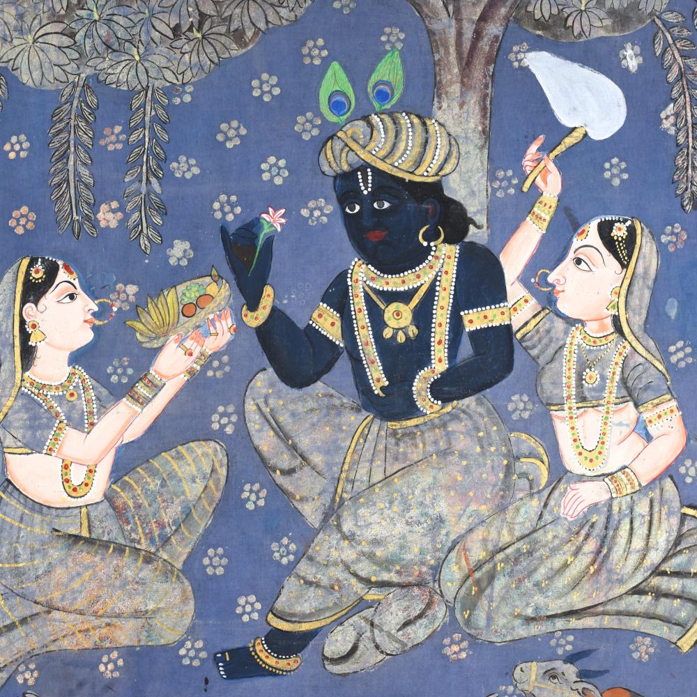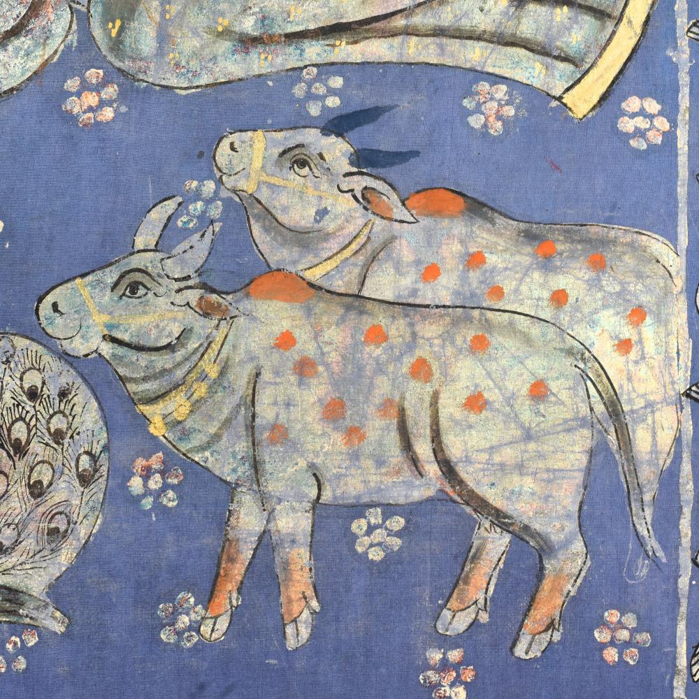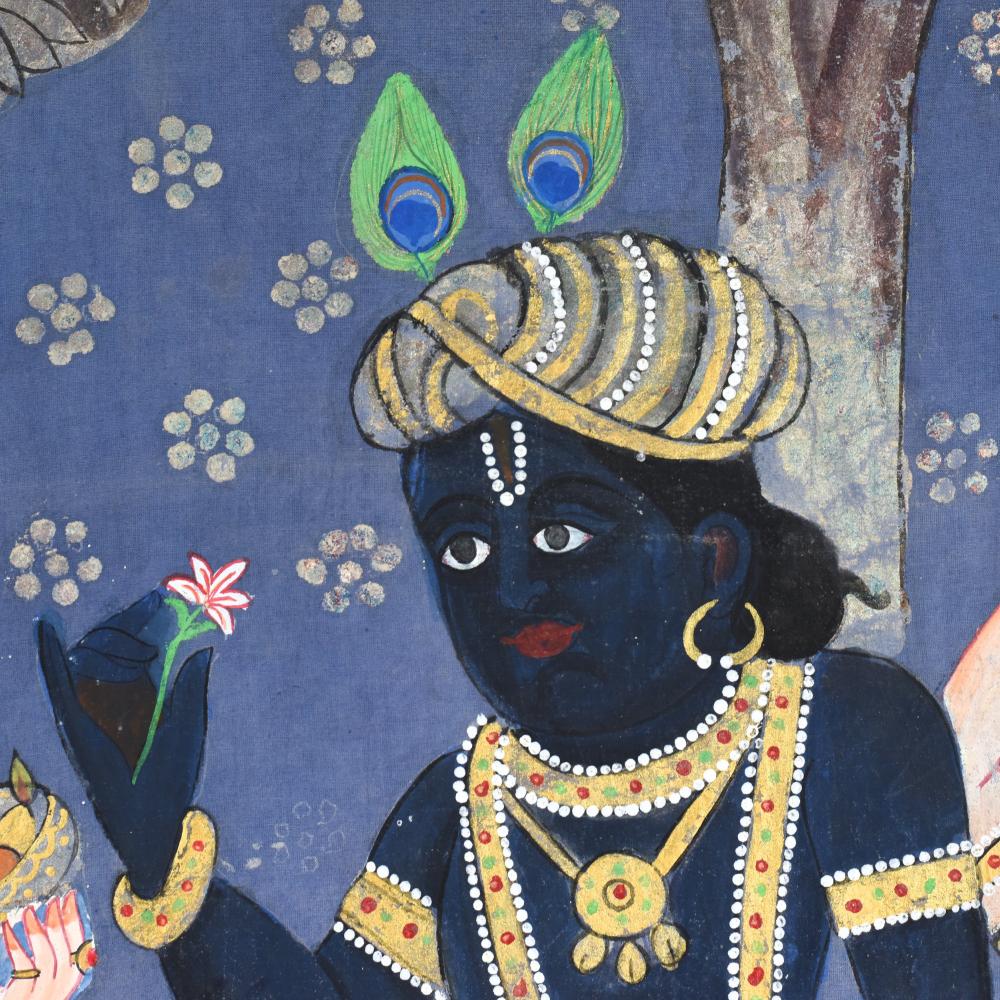- Vibrant, hand-painted cloth pichwai in traditional Indian style