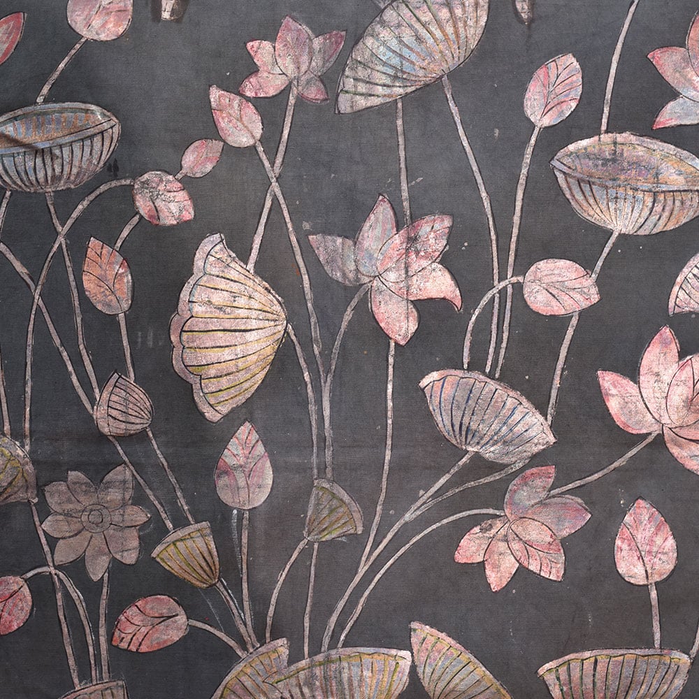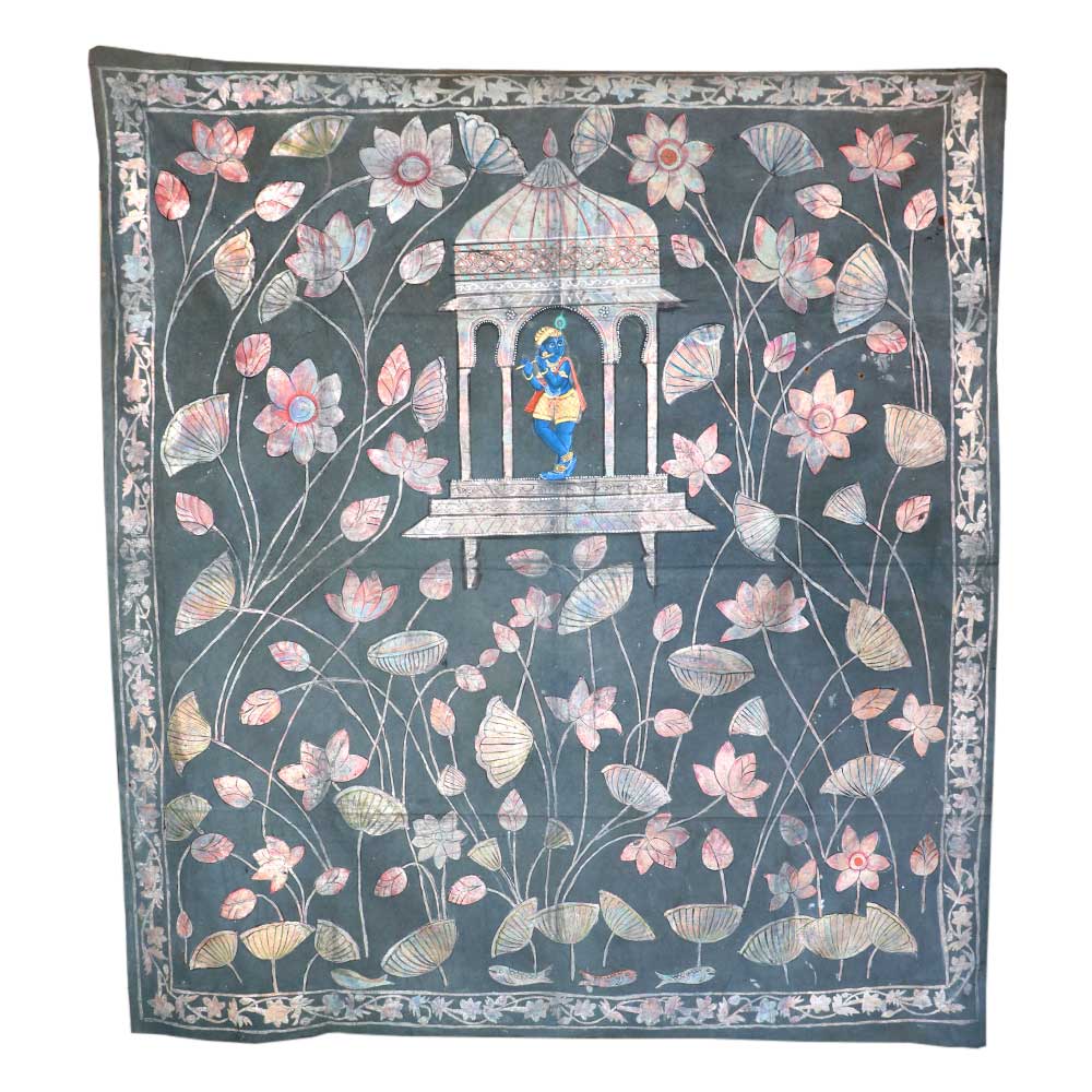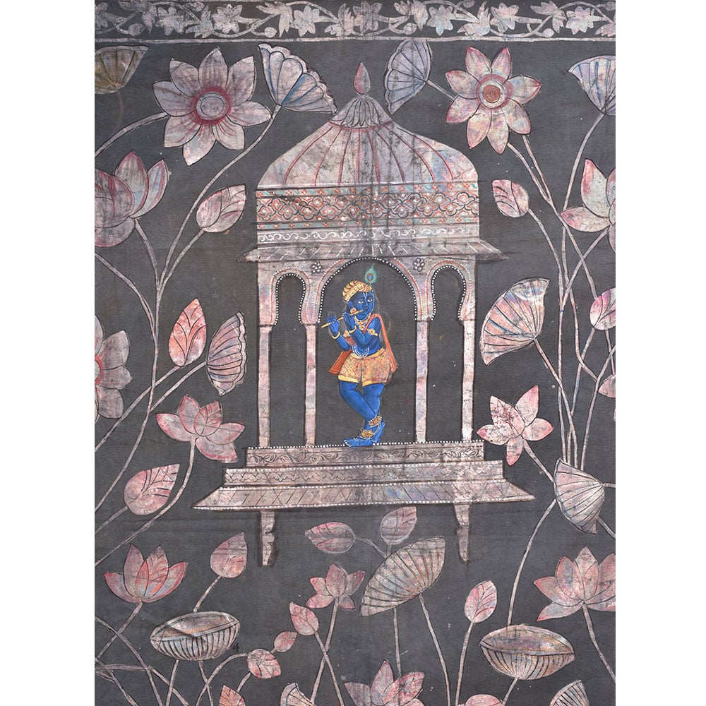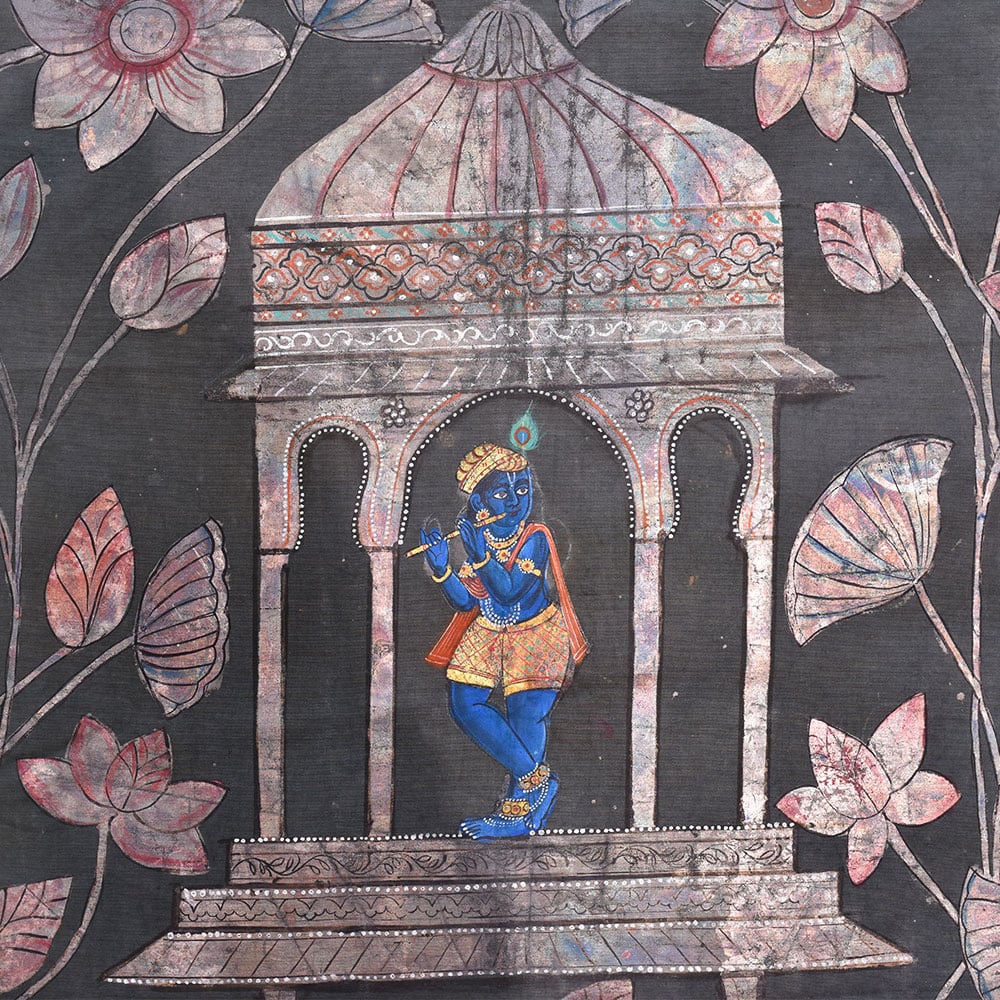 • Pichwai Krishna Painting In Floral Background On Black Cloth