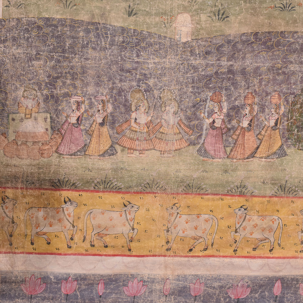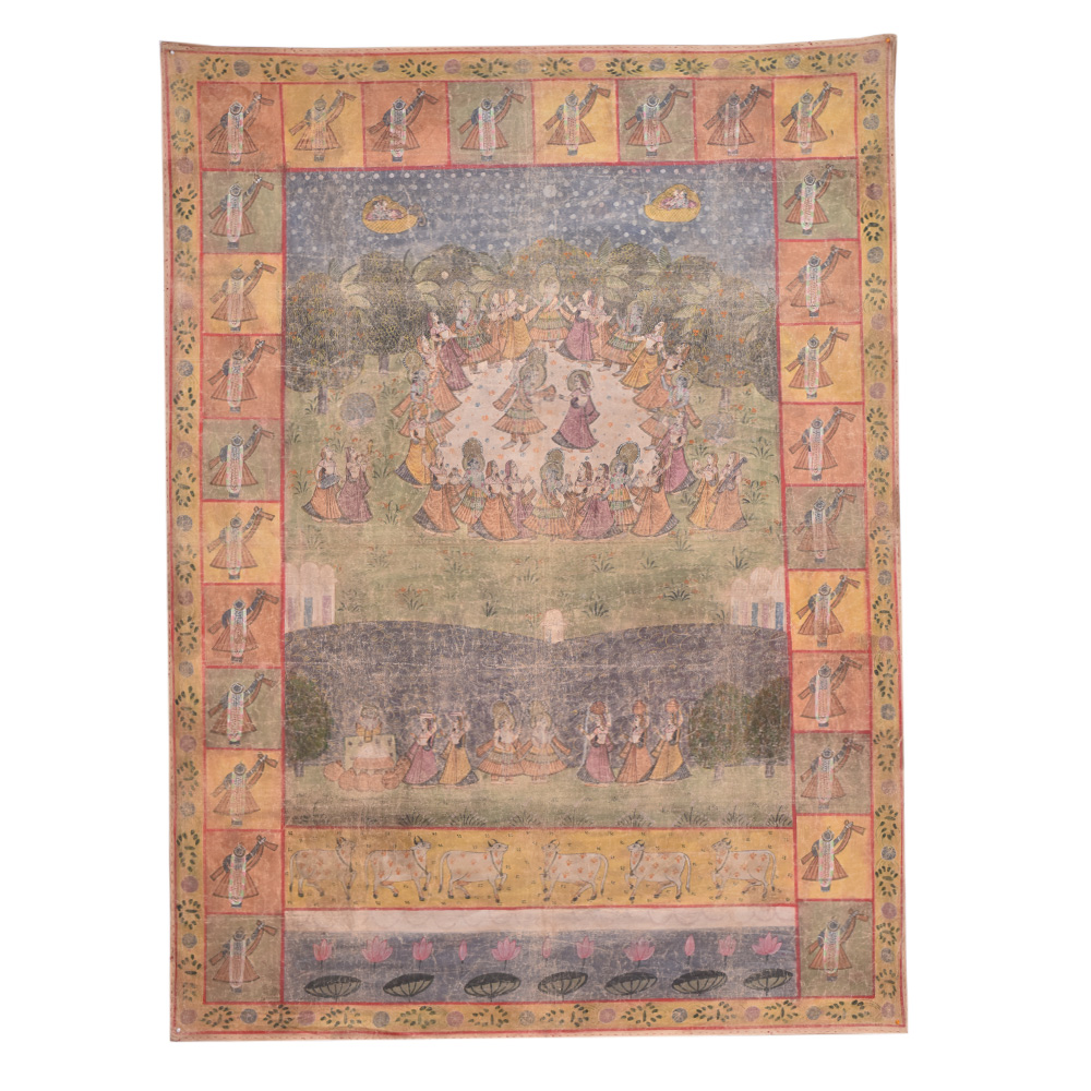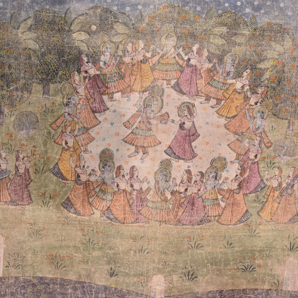 • Pichwai Painting Of Lord Krishna Ras Leela Dancing With Gopis