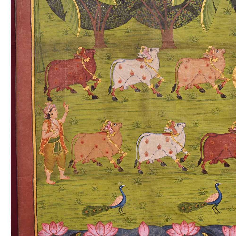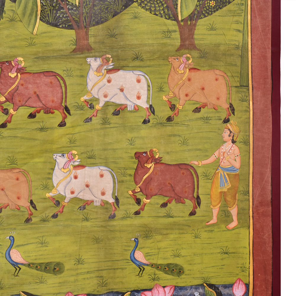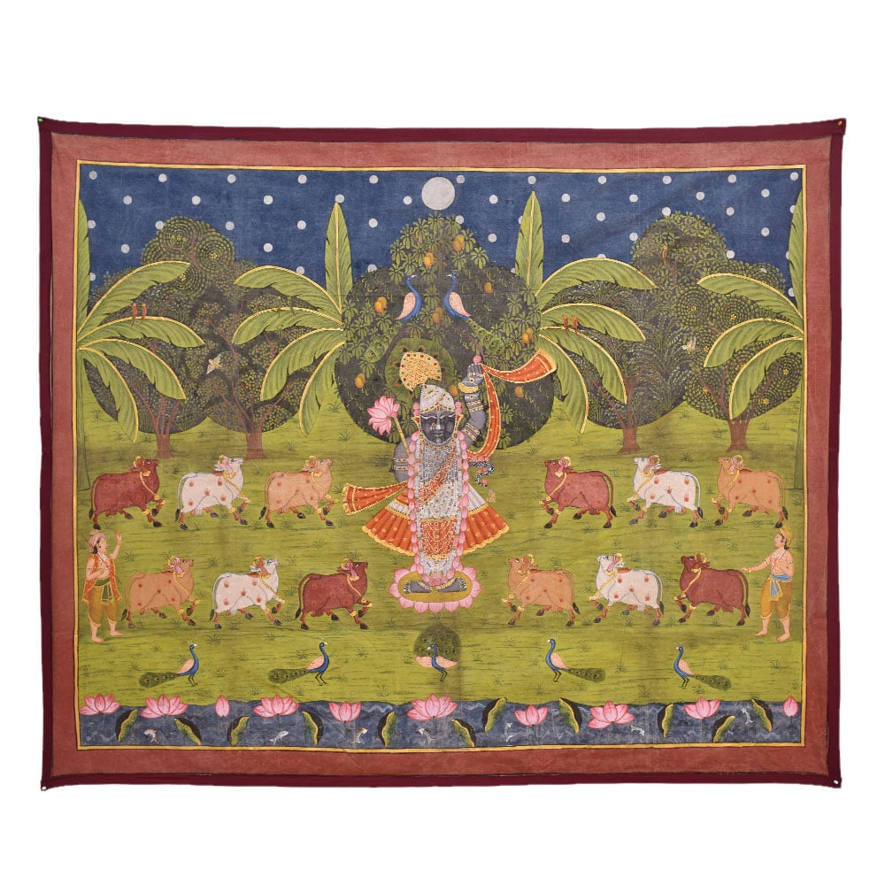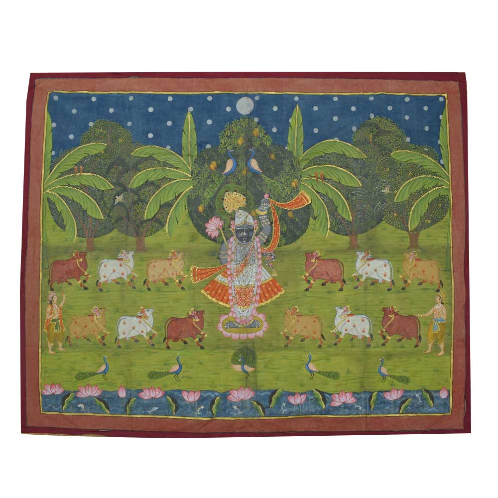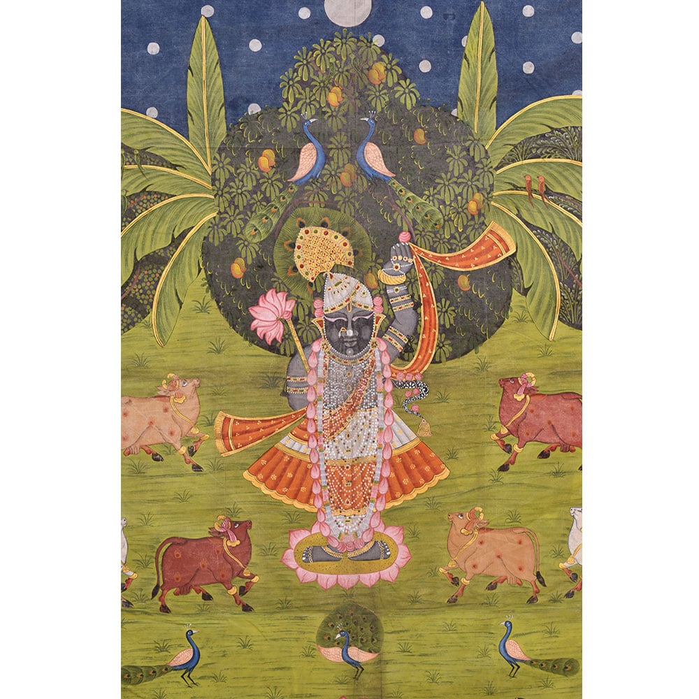 • Pichwai Painting of Srinathji In Forest With Cows