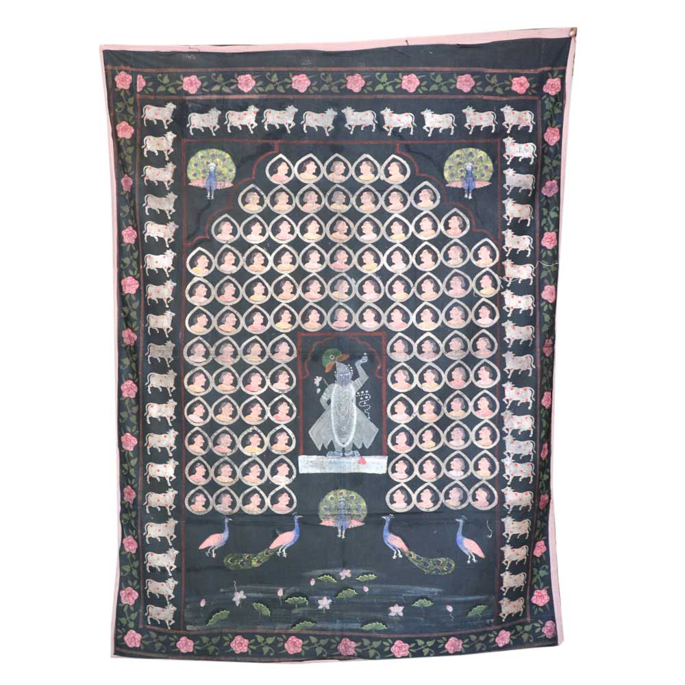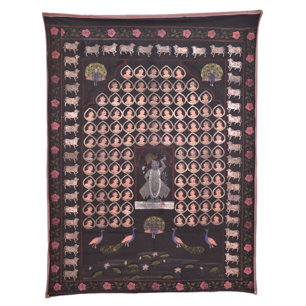 • Pichwai Sreenathji Painting With Face Motifs  On Black Cloth