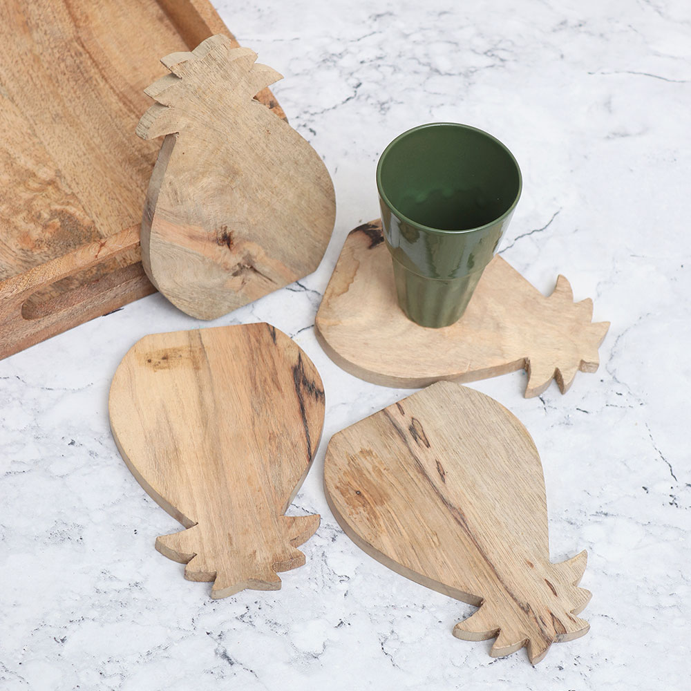 With their pineapple shape and natural wood tones, these coasters bring the essence of the tropics into your home. Whether you're decorating a beach-themed living room or adding a quirky touch to your office, these coasters effortlessly enhance your space with a fun and light-hearted vibe.