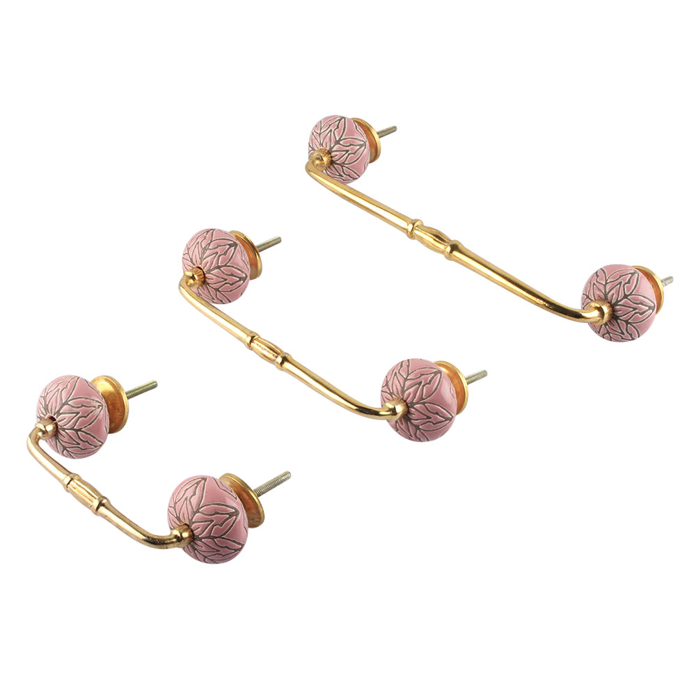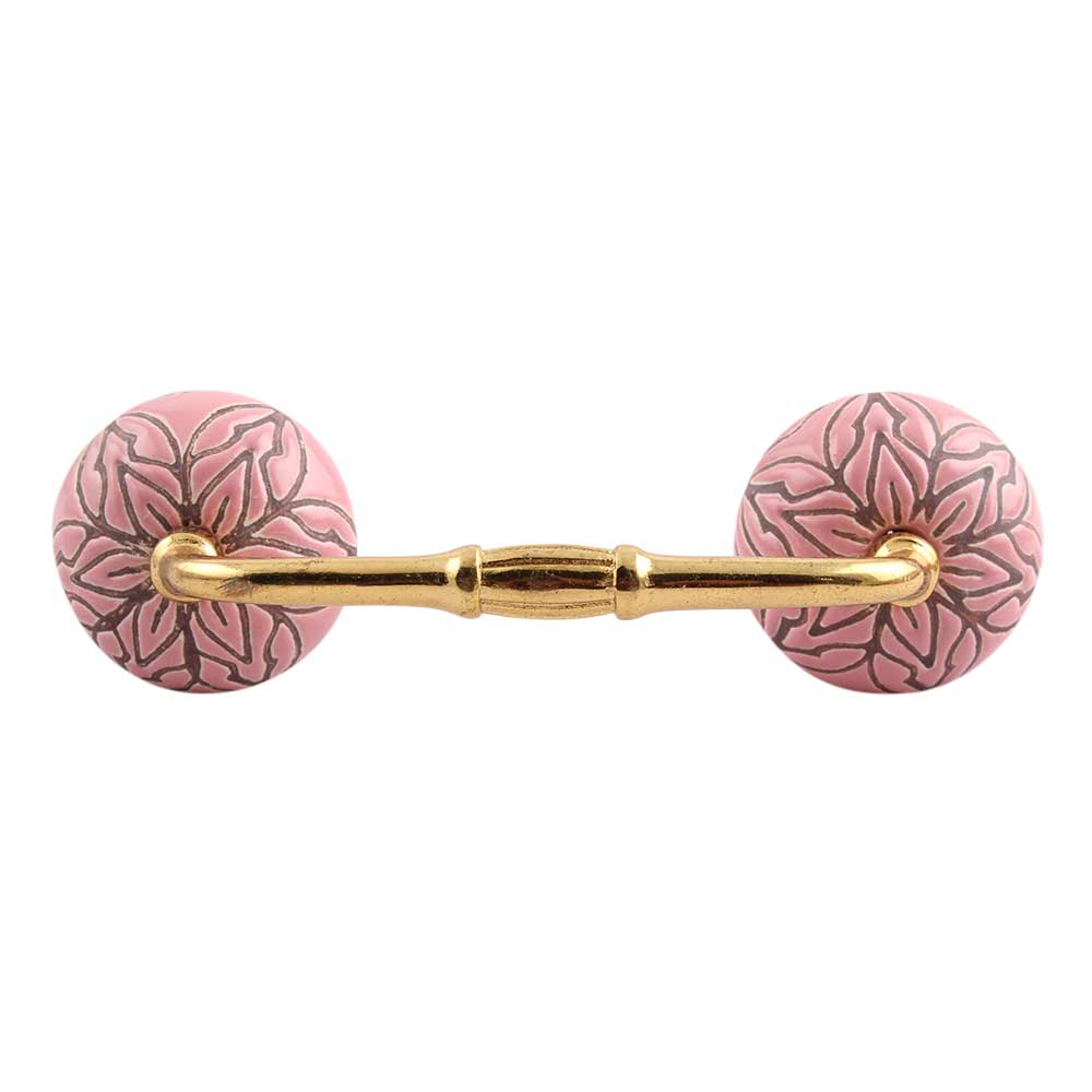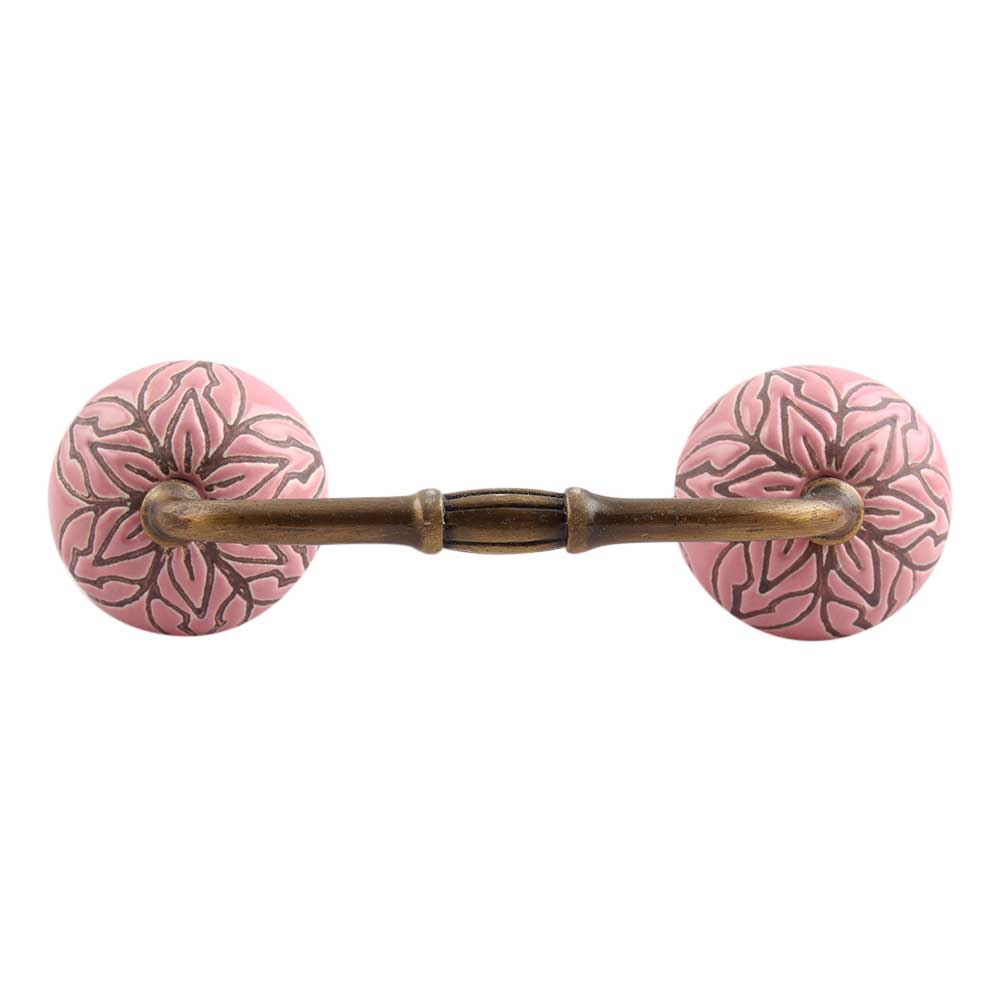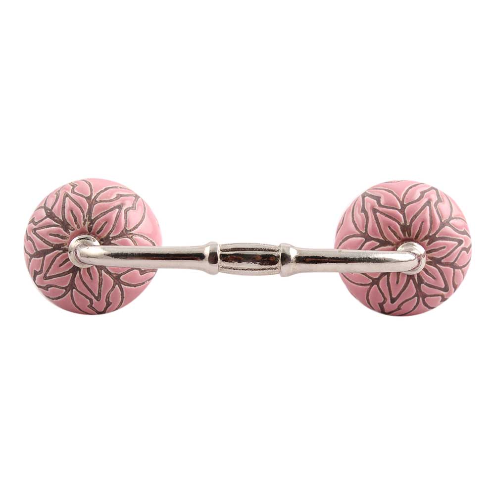 Pink Amarylis Floral Etched Ceramic Bridge Handle. Ideal for Drawer, Dresser, Cabinet, Wardrobe, Cupboard and Almirah.