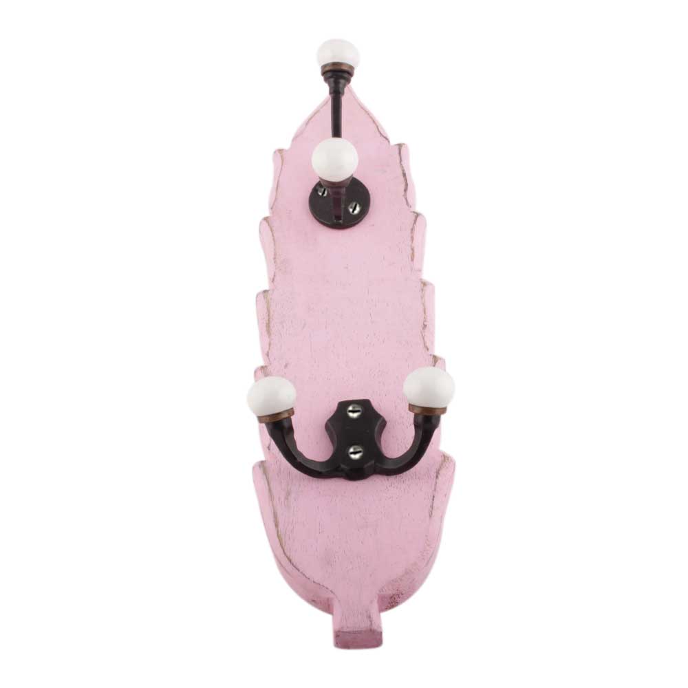 Pink And Black Double Loop Ceramic Iron Wooden Hooks. A Perfect Complement to the Soft Tone of the Wood are these White Traditional Hat and Coat Hook Made of Genuine Porcelain and Brass. It can be used to Hang Jewelry, Leashes, Towels, Scarves, Light Weight Sweaters, Caps etc.
