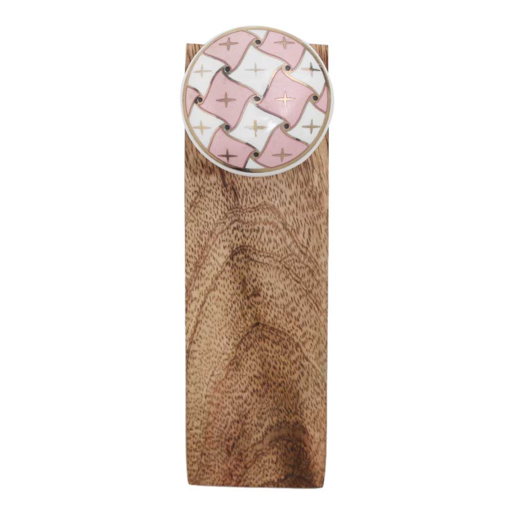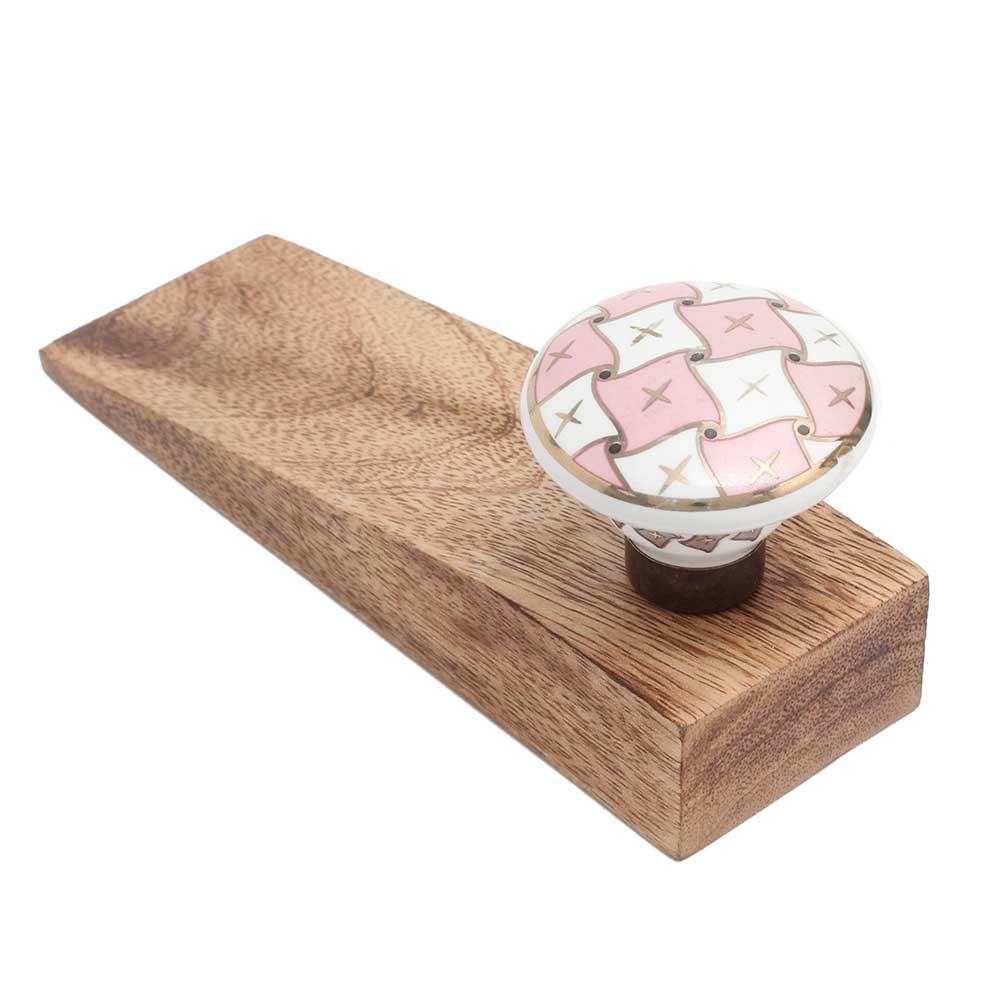 Pink and White Golden Checkerboard Ceramic Wooden Door Stopper