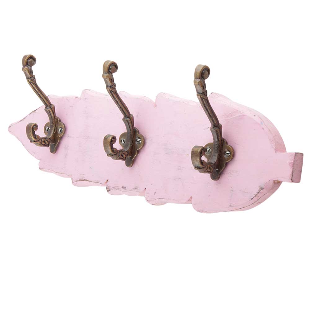 Pink Antique Small Wall Wooden Iron Hooks
