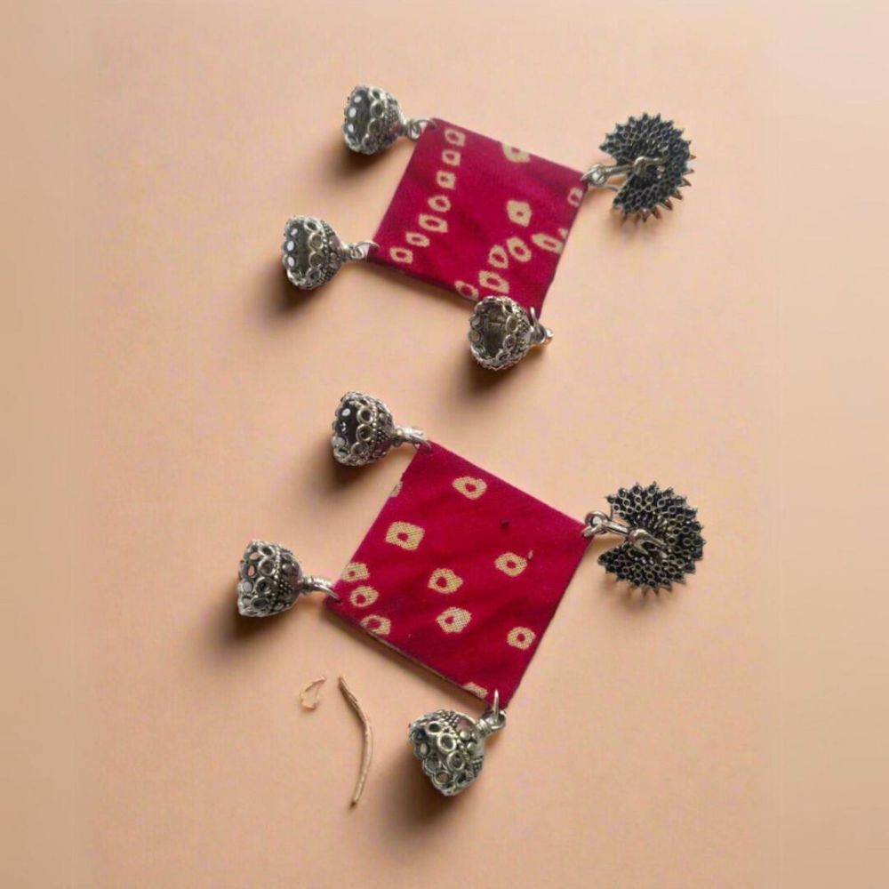 The Pink Bandhani Fabric Jhumka Earrings for Women celebrate India’s beloved tie-dye textile tradition in a classic, wearable form. Crafted on a fabric base, the Bandhani-inspired print brings cultural warmth and festive vibrance, while the jhumka silhouette adds timeless movement and elegance. The soft pink tone enhances the handcrafted feel, making the earrings expressive yet gentle. Designed for comfort and tradition, they suit both everyday ethnic wear and celebratory occasions.